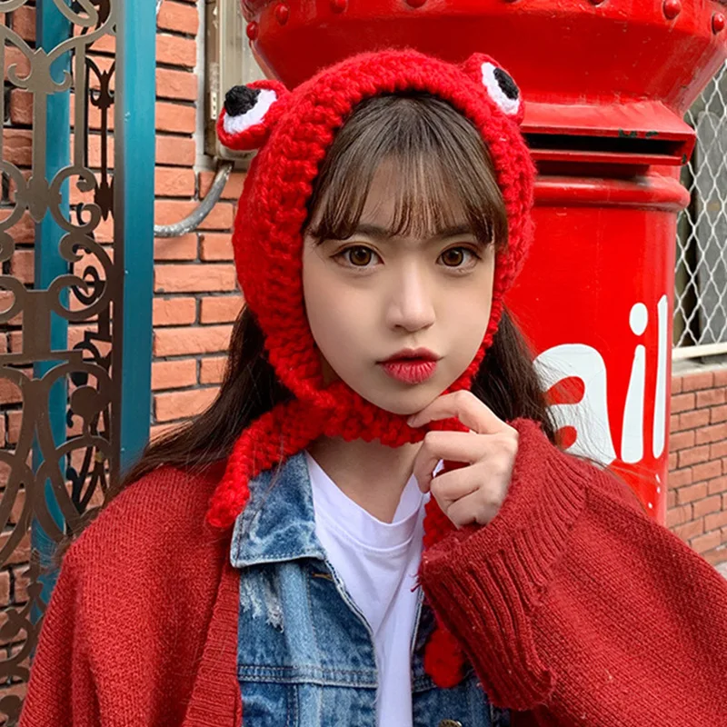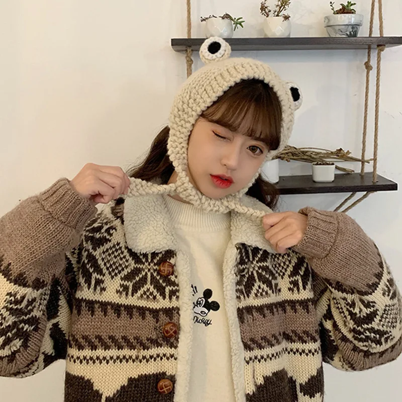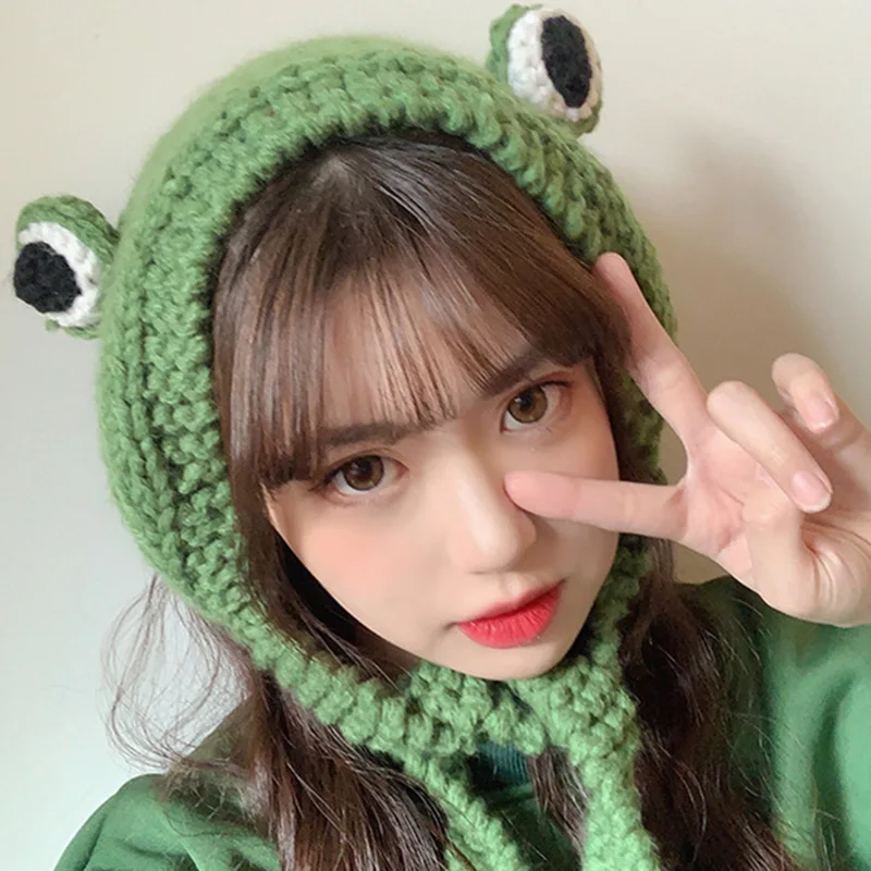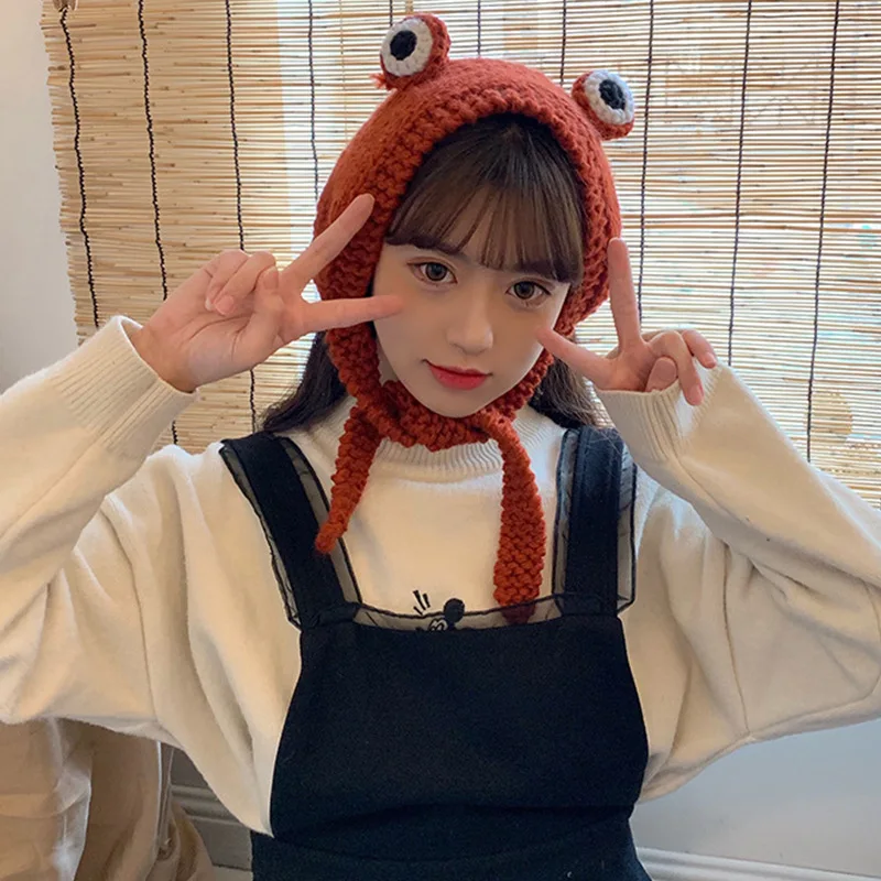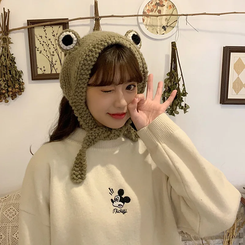 2021 mode Herbst Winter Frosch Hut Beanies Gestrickte Hut Solide Hip-hop Nette Gestrickte Hut Kappe Damen Mädchen Warme winter Motorhaube