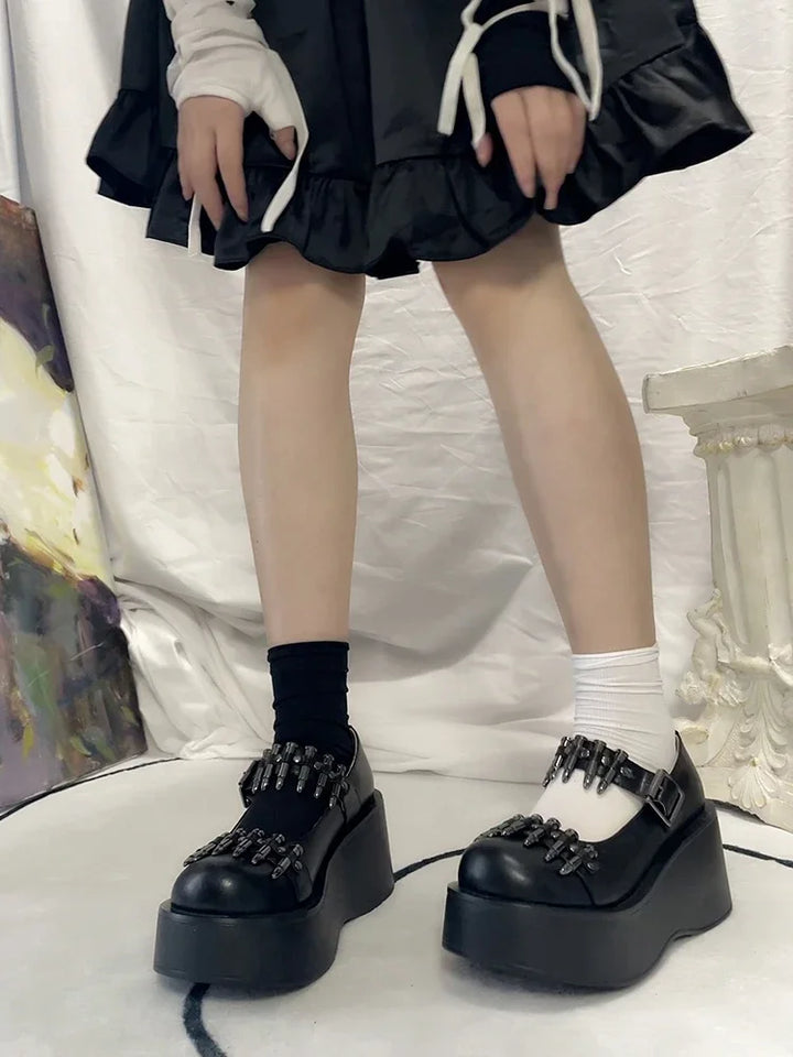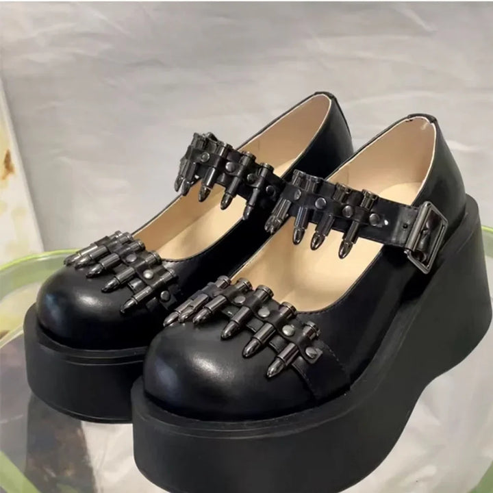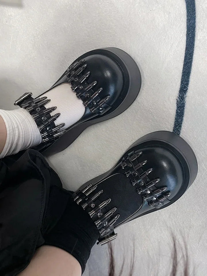 Treten Sie mit unseren Punk-Partyschuhen mit Nietenschnalle ins Rampenlicht. Mit auffälligen Nietendetails und auffälligen Schnallen verleihen diese Schuhe Ihrem Party-Look eine ausgefallene Note.