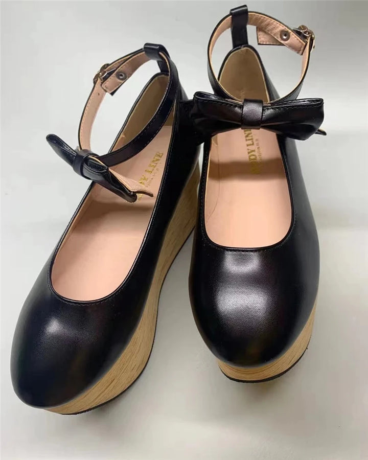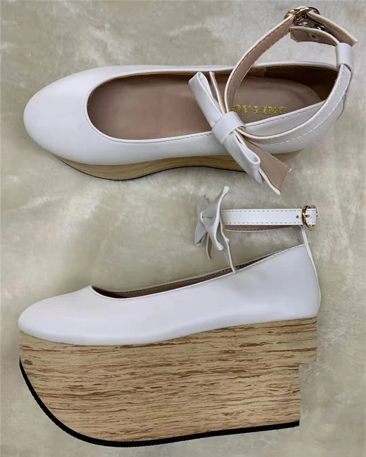 Veredeln Sie Ihren Stil mit unseren School Chic Bowknot Plateau-Pumps mit Knöchelriemen. Diese eleganten Pumps verfügen über ein süßes Schleifendetail und ein bequemes Plateau, perfekt für Schulveranstaltungen oder elegante Anlässe!