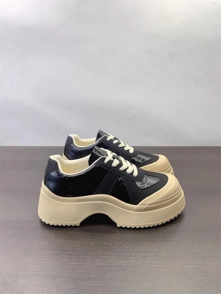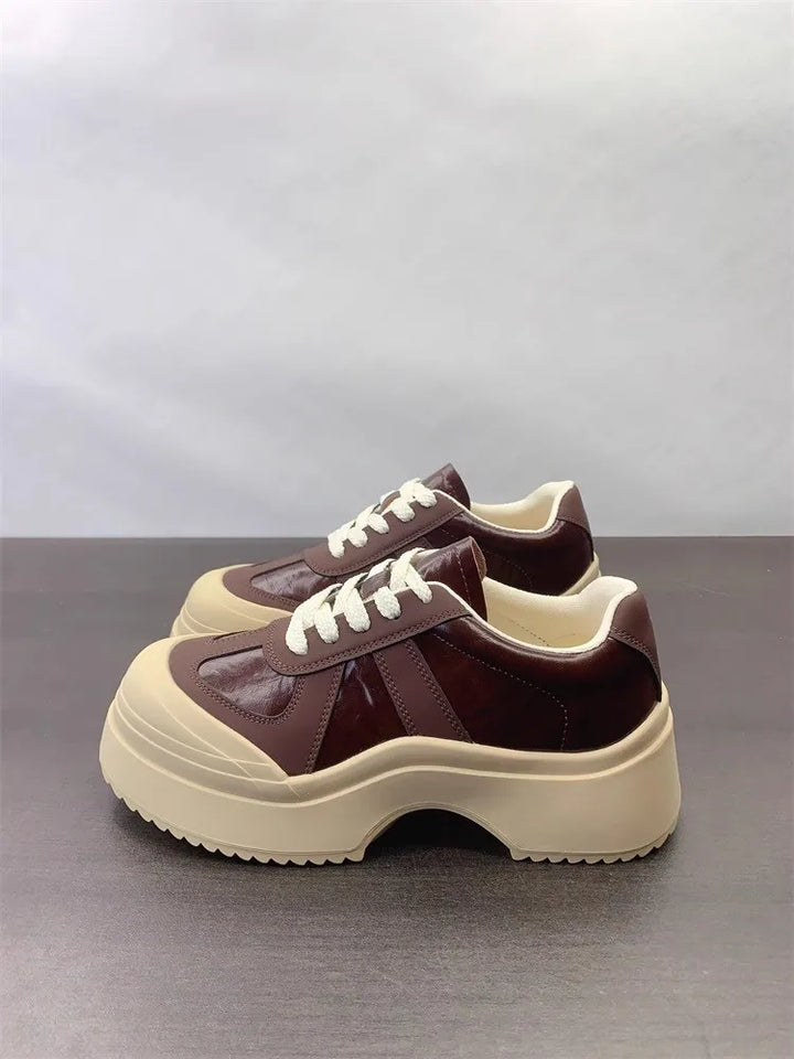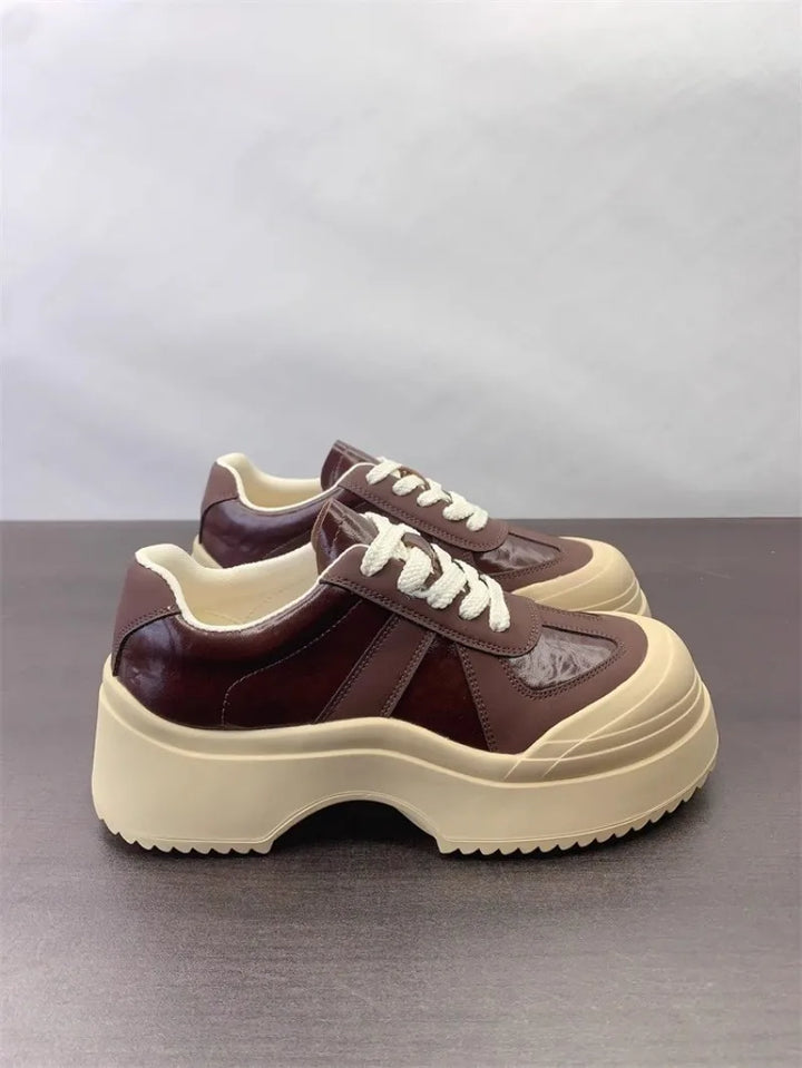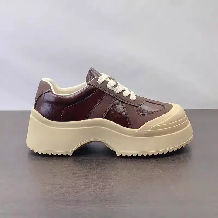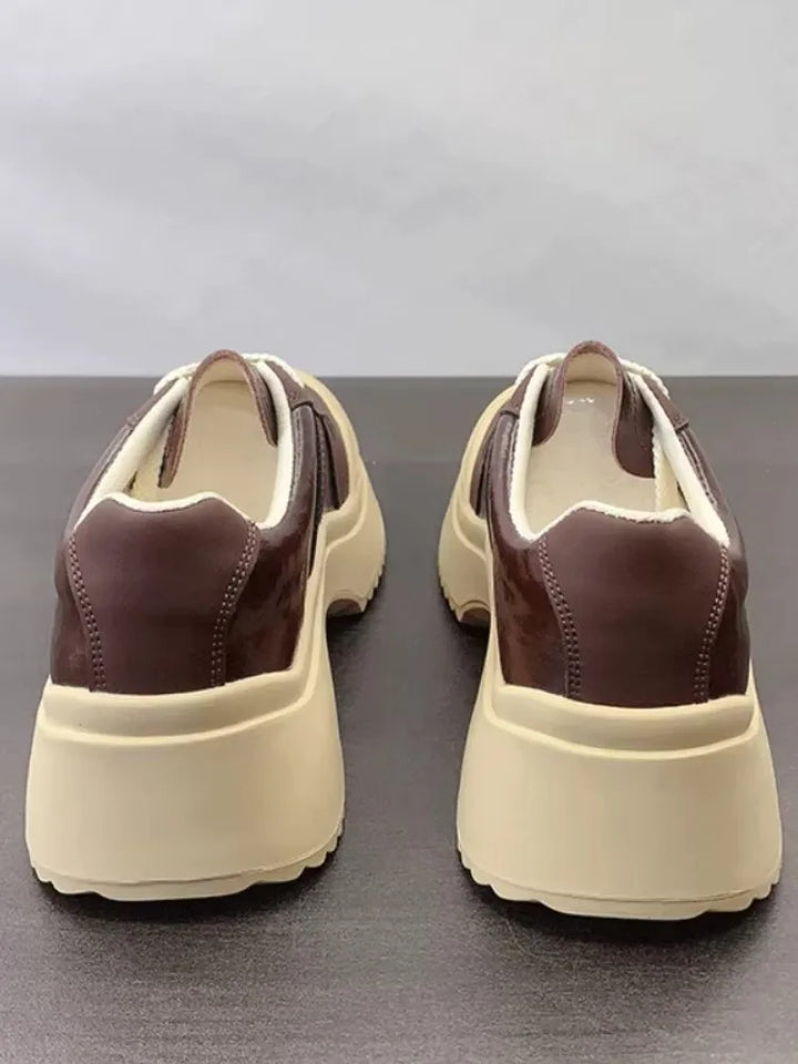 Genießen Sie Komfort und Stil mit unseren Vintage-Plateauschuhen aus Leder mit dicker Sohle. Diese Schuhe kombinieren klassisches Design mit einer robusten Plateausohle und eignen sich perfekt für den Alltag und sorgen für mühelosen Chic.