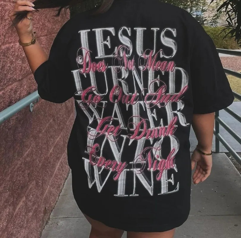Gothic Print Oversized Cotton T-Shirt