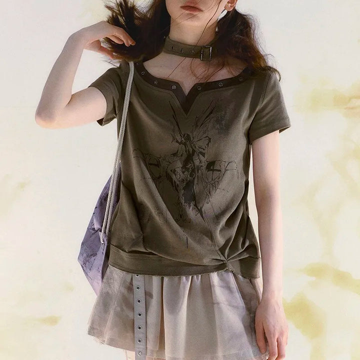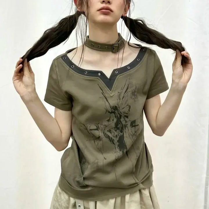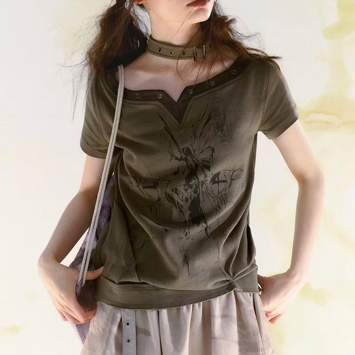 Vintage Patchwork Halter Wasteland Punk T-Shirt