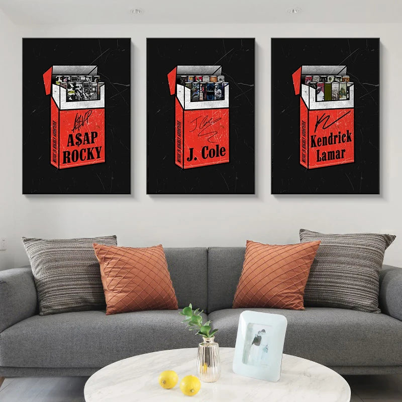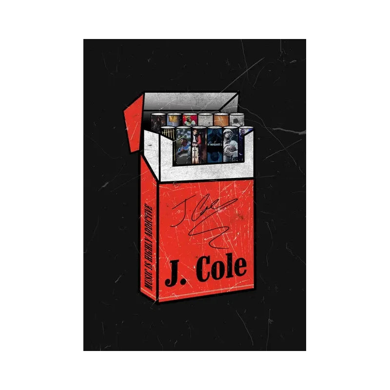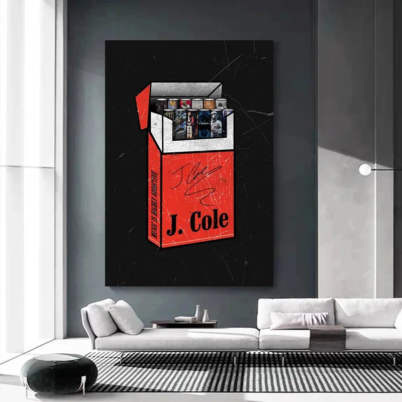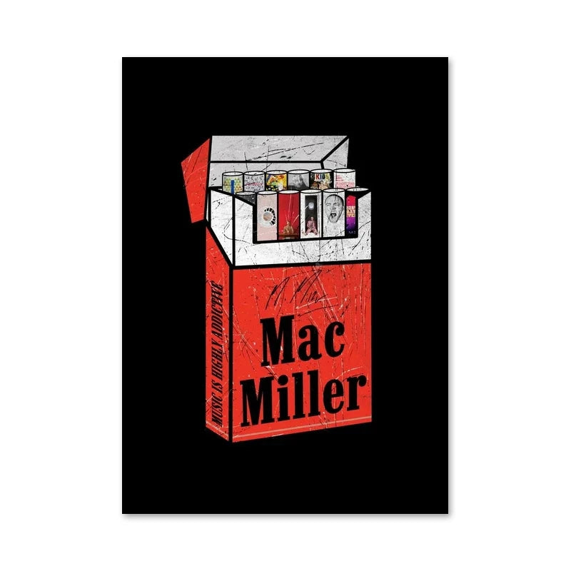 Stylish retro poster inspired by pop culture aesthetics. Features a bold singer and cigarette case motif — perfect for adding vintage star energy to your wall décor.