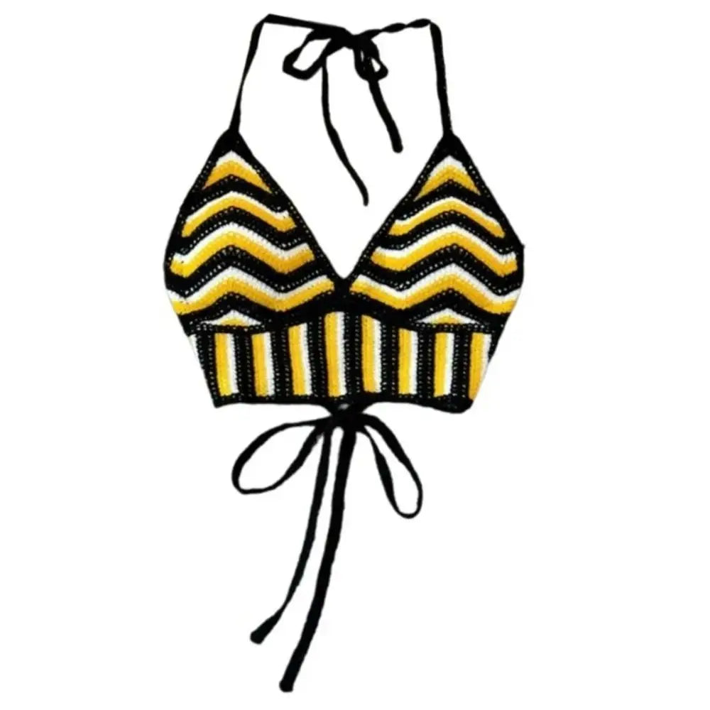 Handmade knitted crochet halter top with a sexy chic style. Lightweight, breathable, and perfect for summer, festivals, or beach outings.