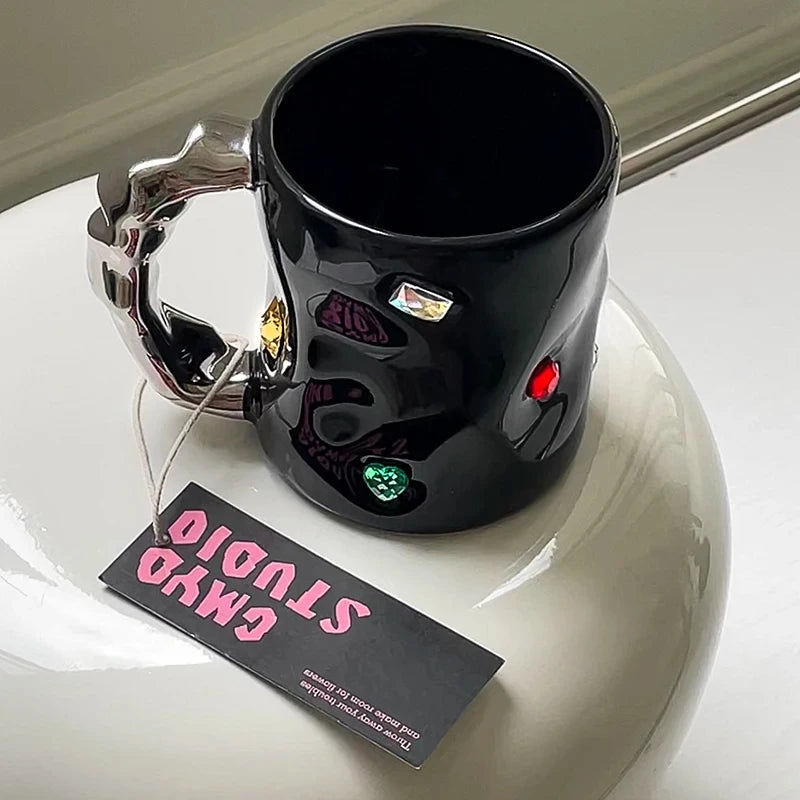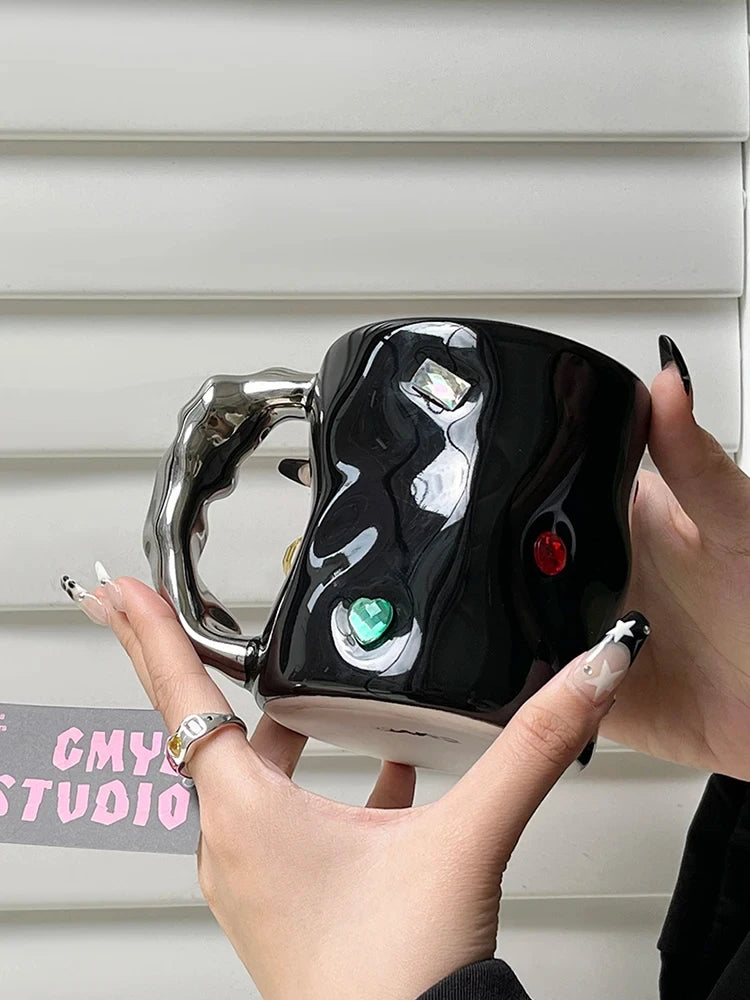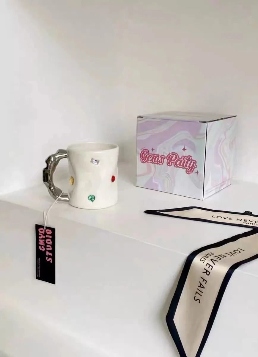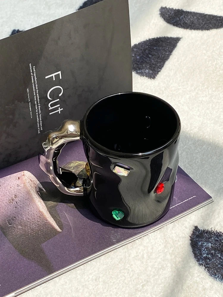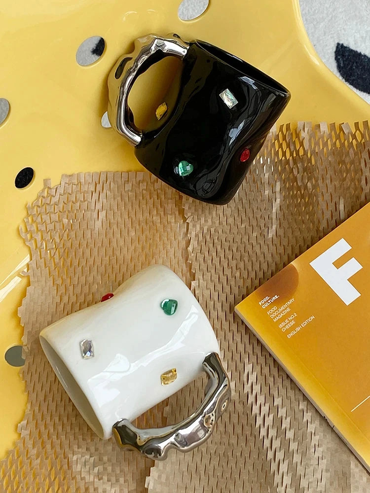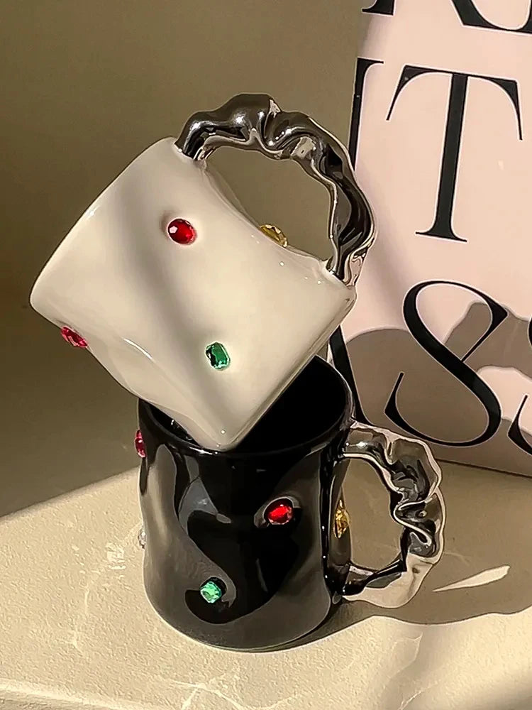 Elegant coffee cup adorned with gem-like accents for a touch of luxury. Perfect for sipping espresso or tea in style — chic, artistic, and eye-catching.