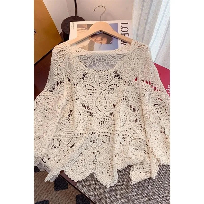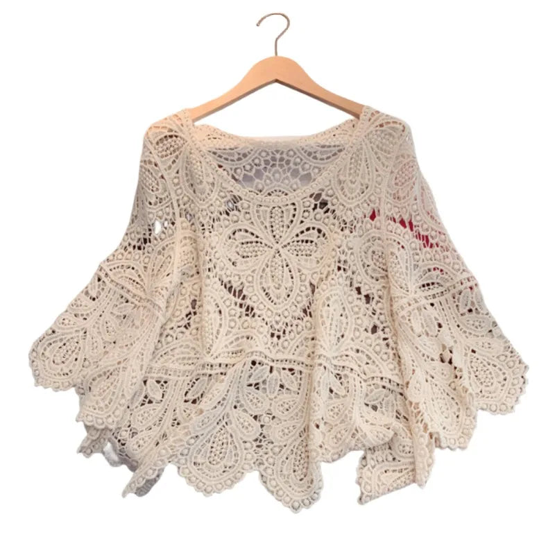 Crochet versatile shawl cropped handmade top with boho charm. Lightweight, stylish, and perfect for layering or summer festival looks.