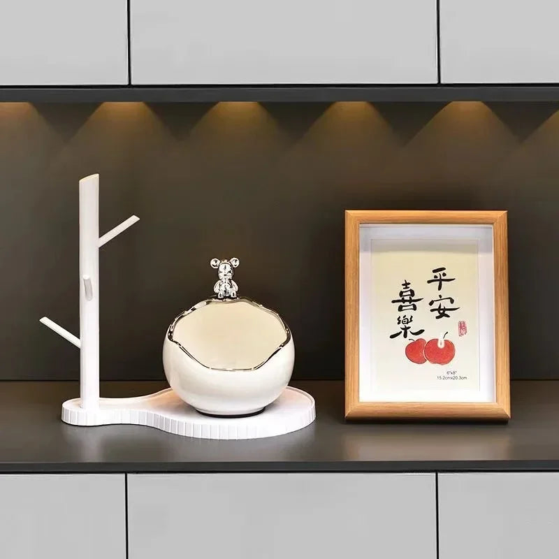 Ceramic Bear Tray Statue featuring a cute yet functional design—perfect for holding keys, jewelry, or snacks while adding a playful and stylish touch to modern home décor.