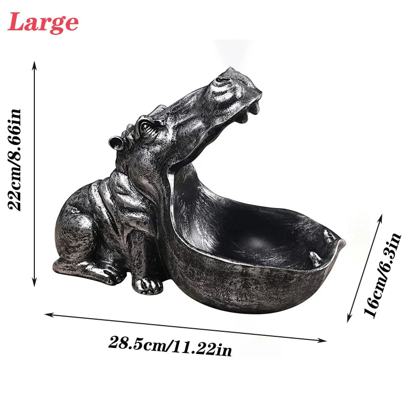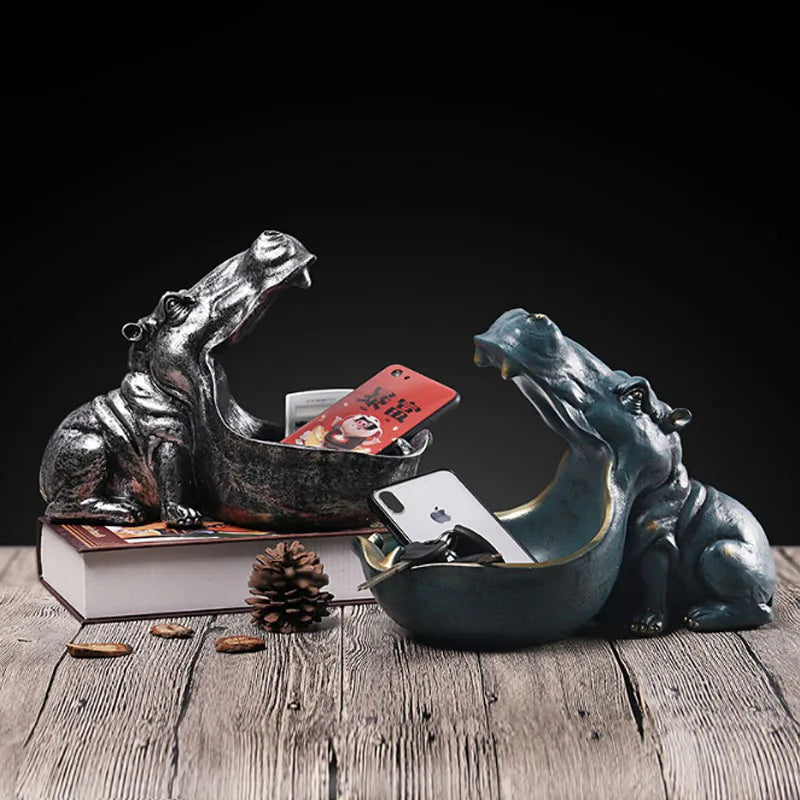 Resin Hippo Statue Sculpture Figurine featuring a cute and creative design—perfect as a decorative piece, key holder, or desk ornament adding charm and personality to any space.