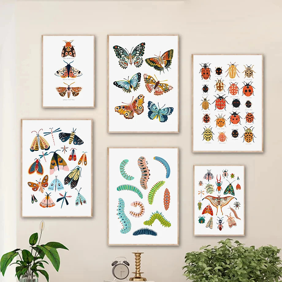 Colorful spring-themed posters featuring butterflies and caterpillars in nature. Perfect for classrooms, kids’ rooms, or nature-inspired wall décor.