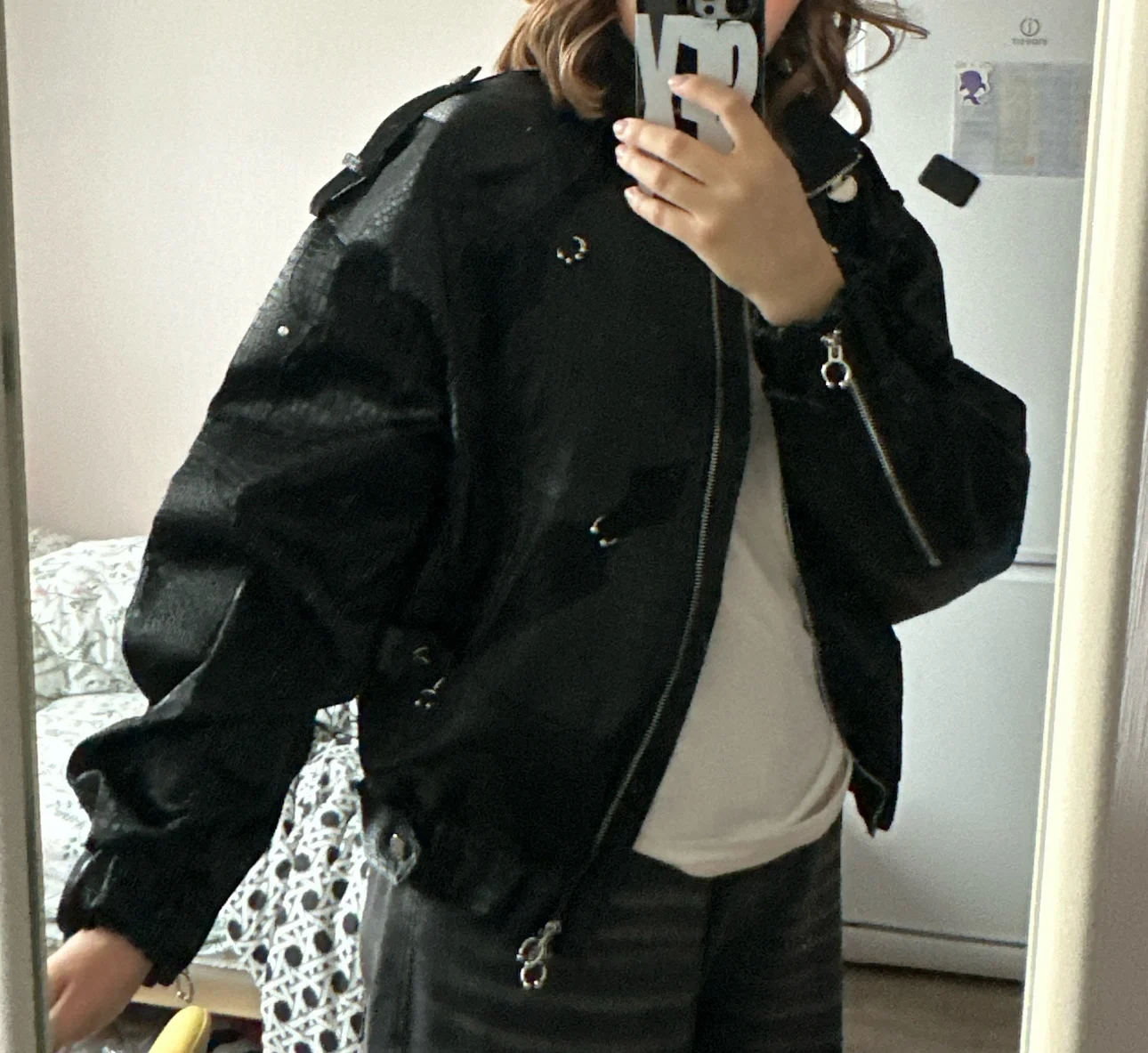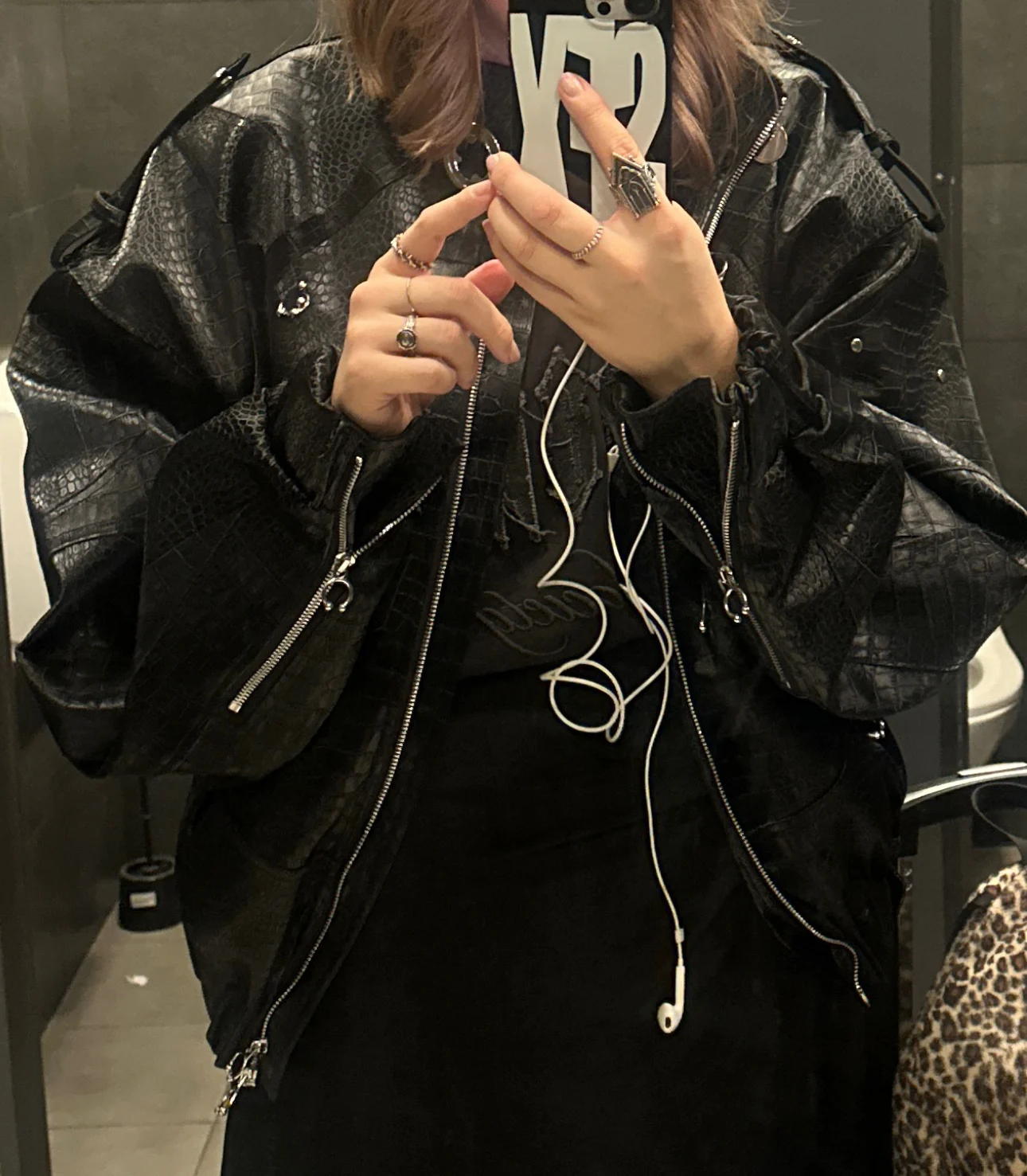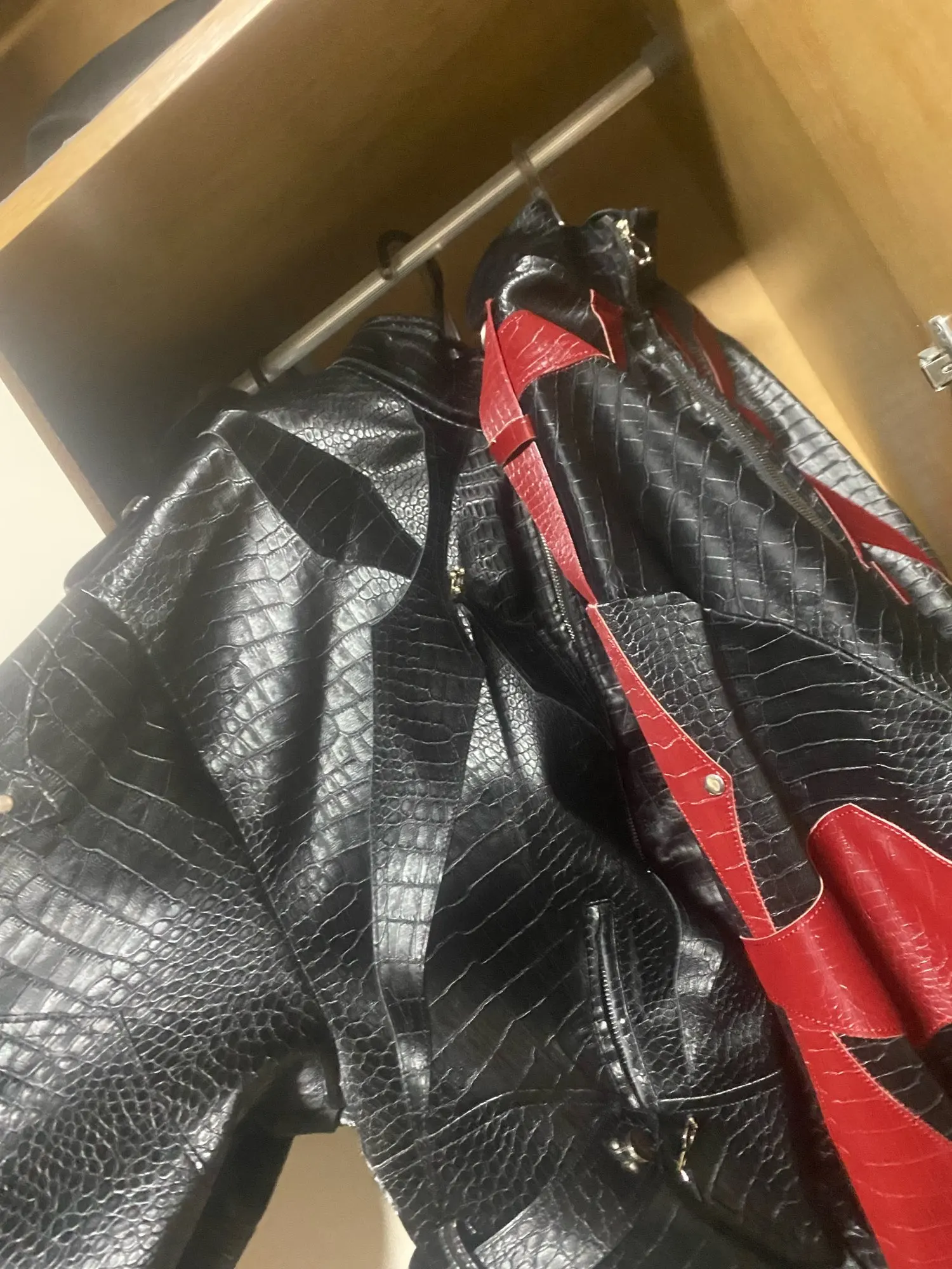 Chaqueta de cuero brillante con estampado de cocodrilo de Acubi