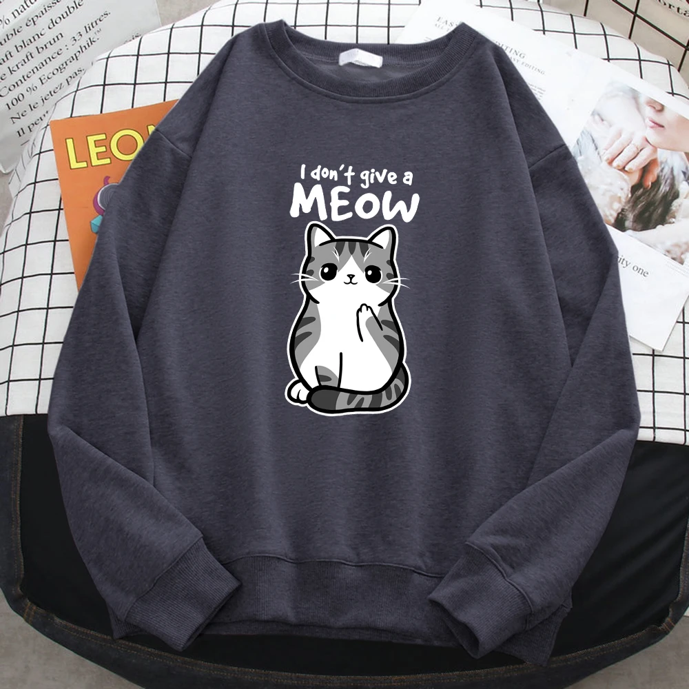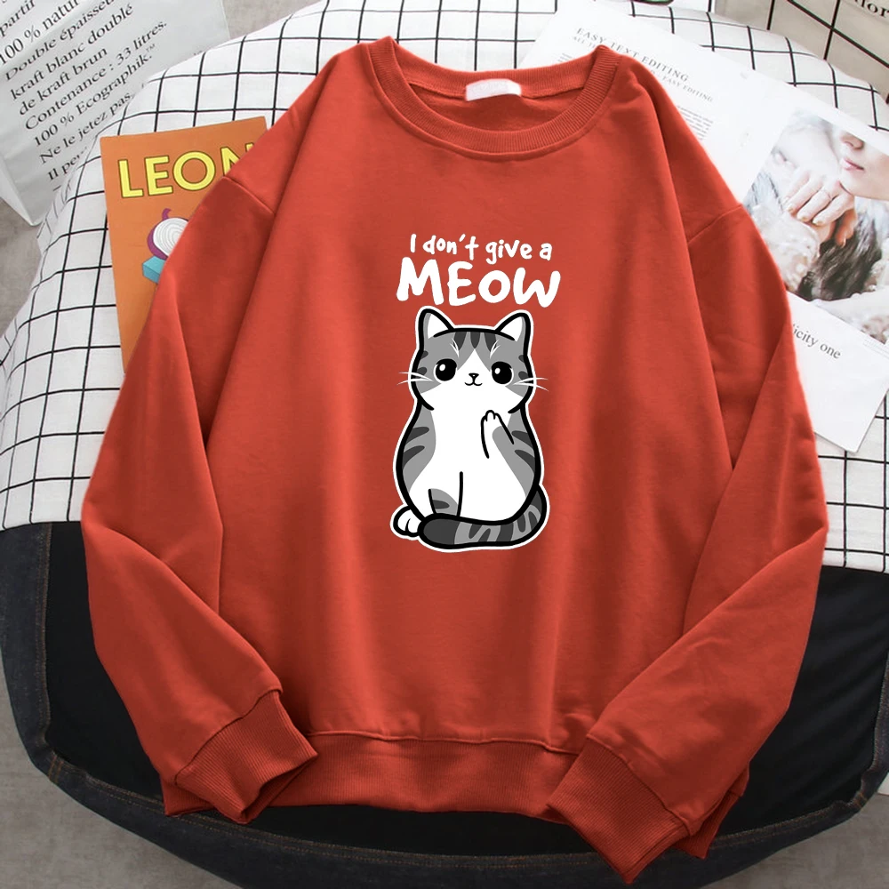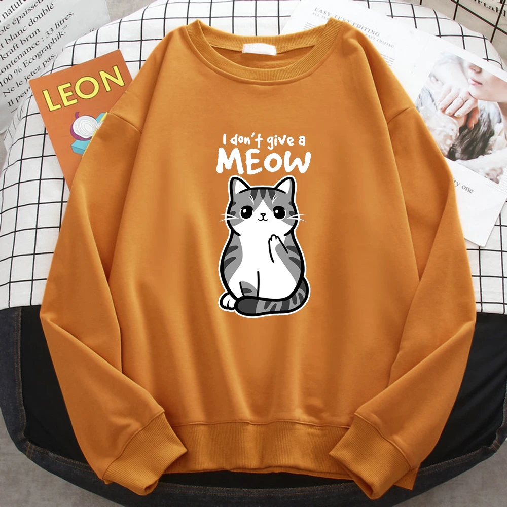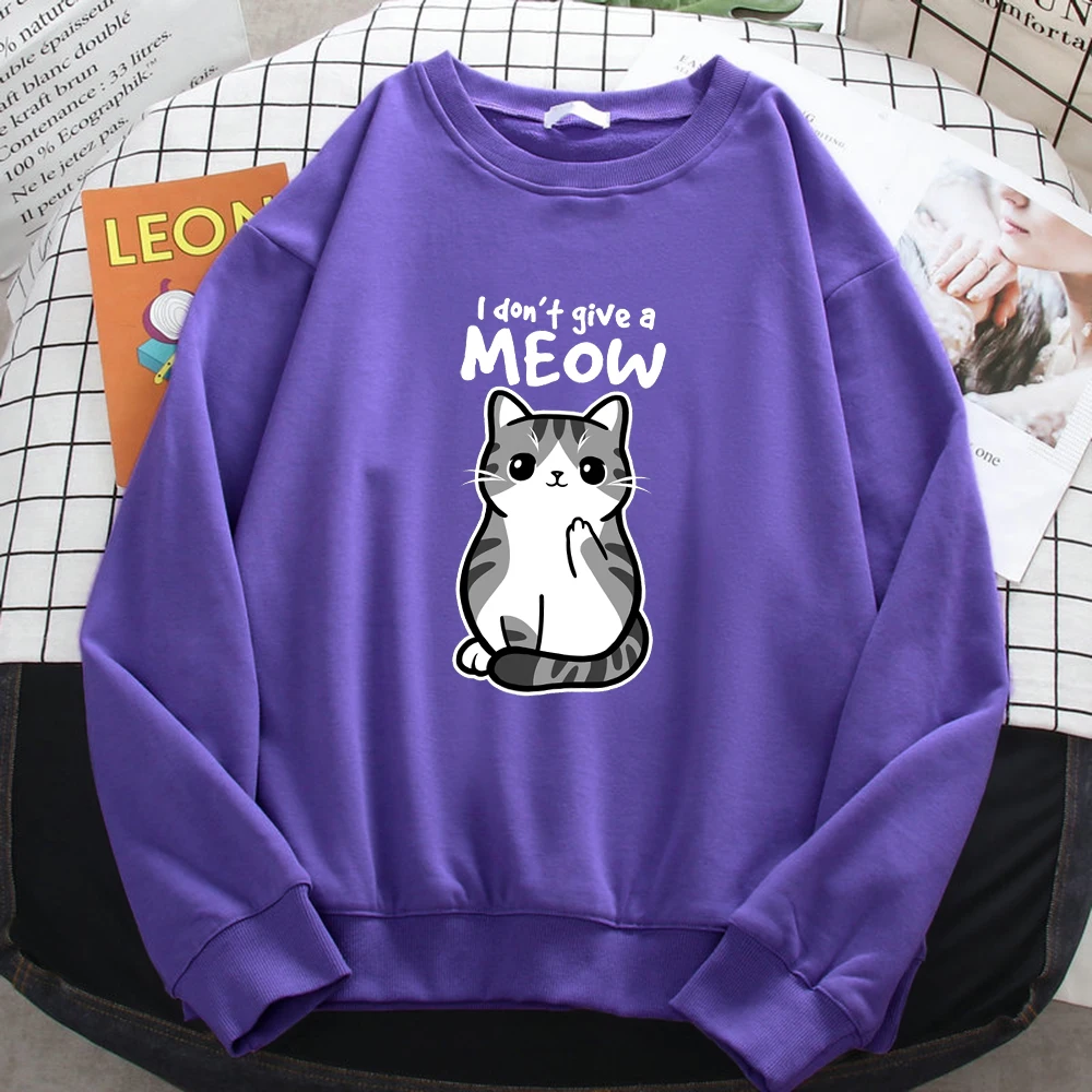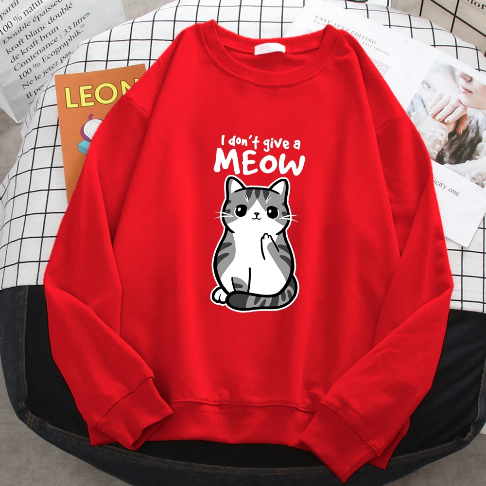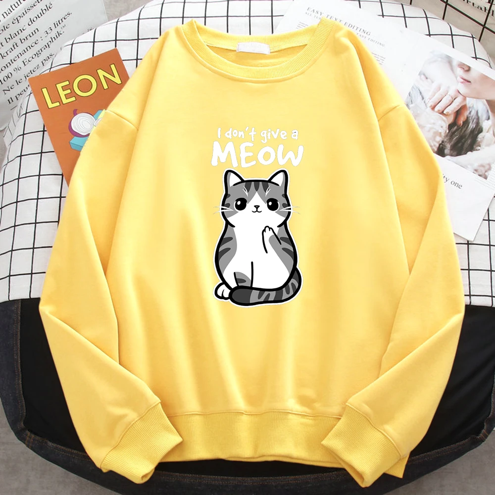 Sudadera sencilla de otoño para mujer, con estampado de gato divertido de dibujos animados, sudadera de forro polar, jerséis holgados y cálidos.