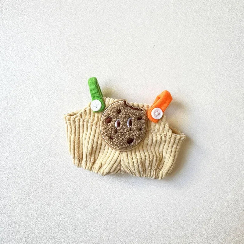 Adorable conjunto de tela inspirado en Lobubu con bonitos pantalones en los hombros, perfecto para estilizar muñecas, regalar o añadir encanto a colecciones.
