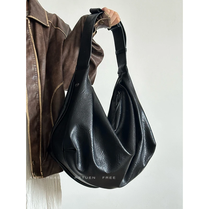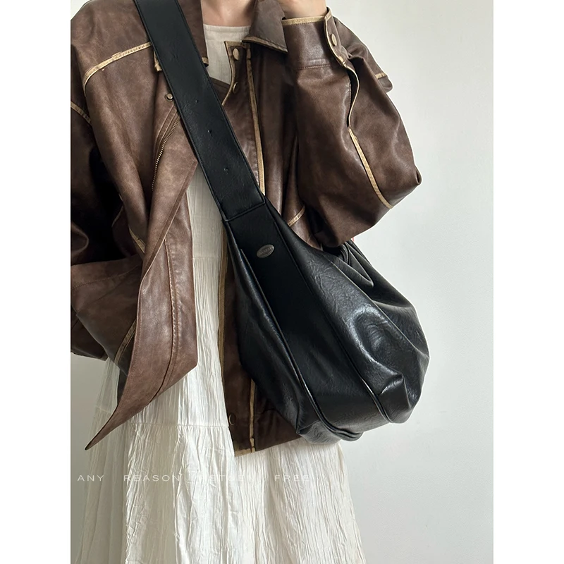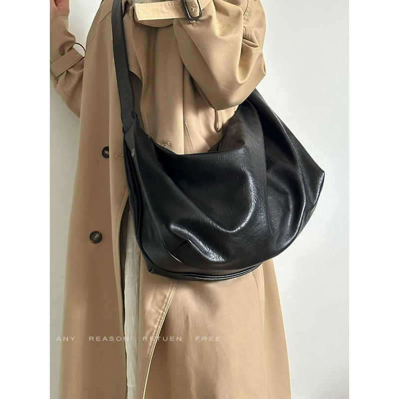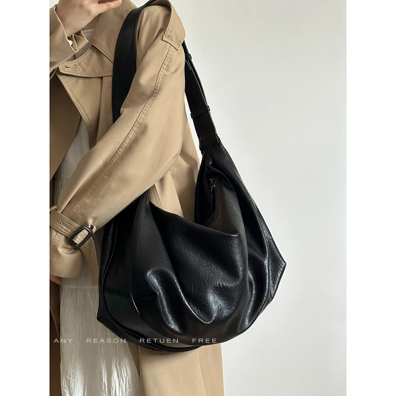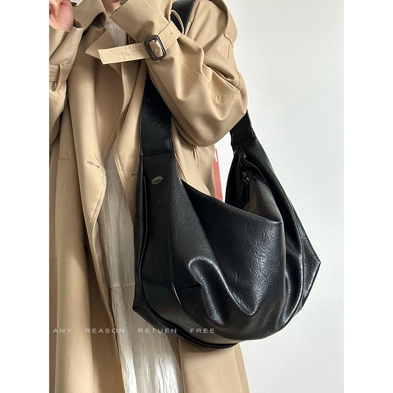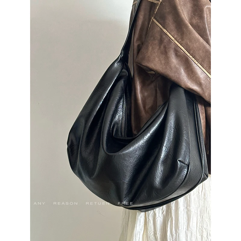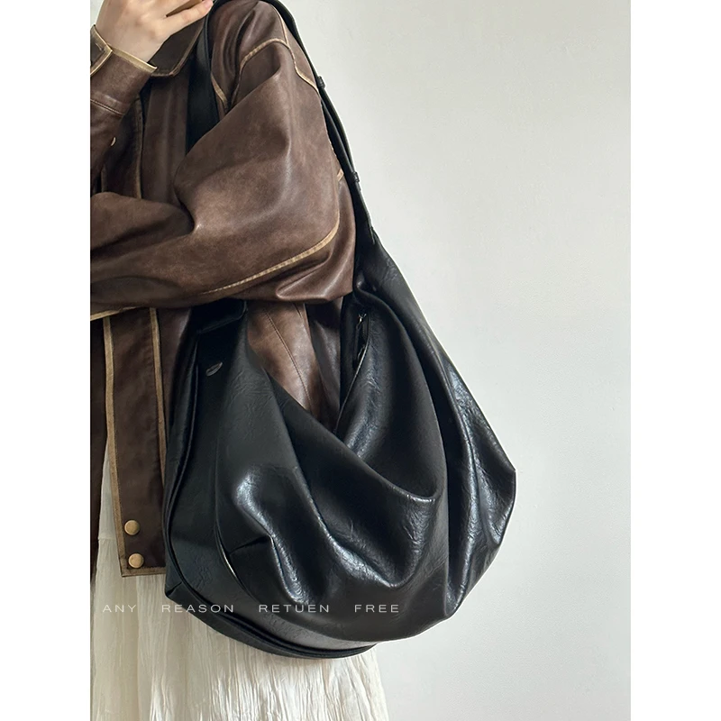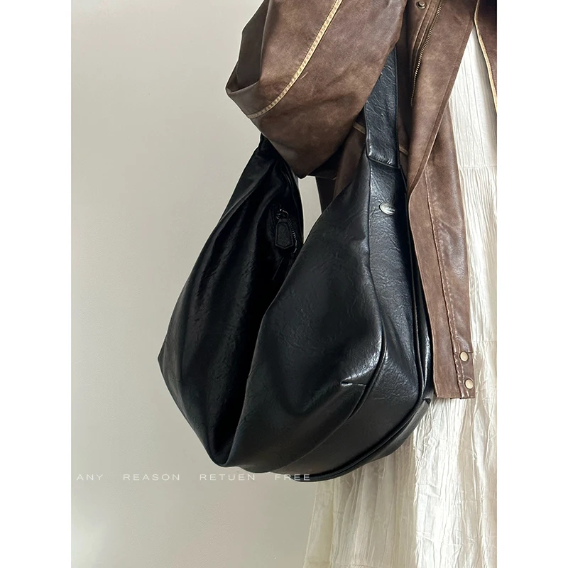 Bolso de mano informal de gran capacidad de piel suave con diseño de mono y bola de masa hervida, bolso bandolera para mujer, bolso vintage de color puro
