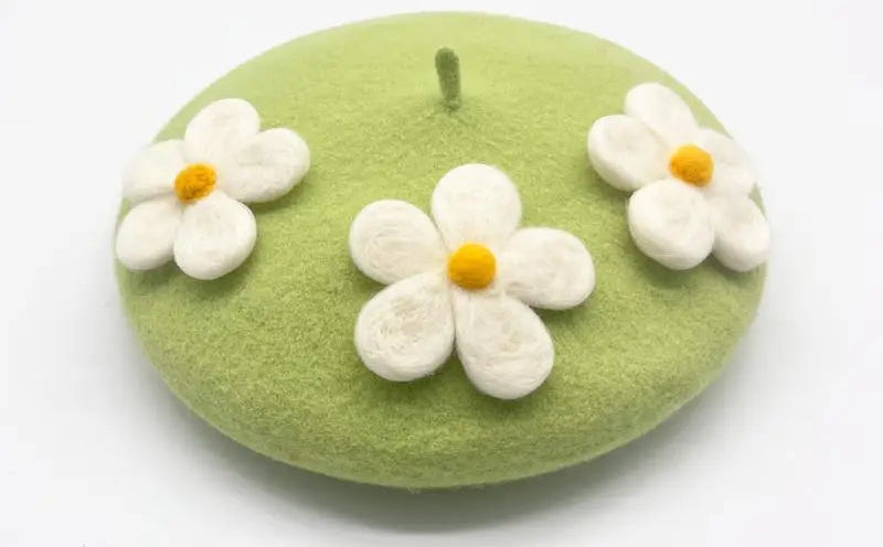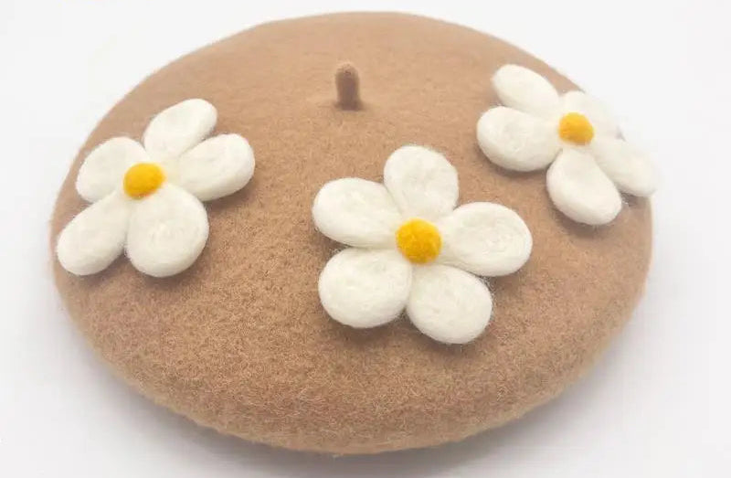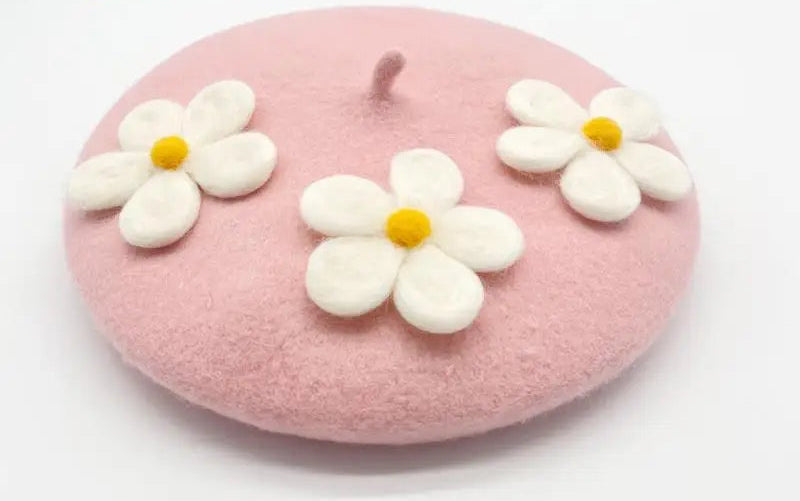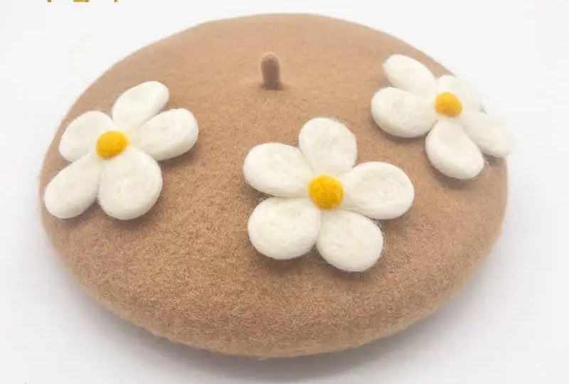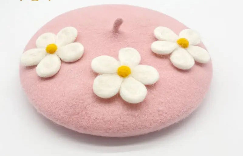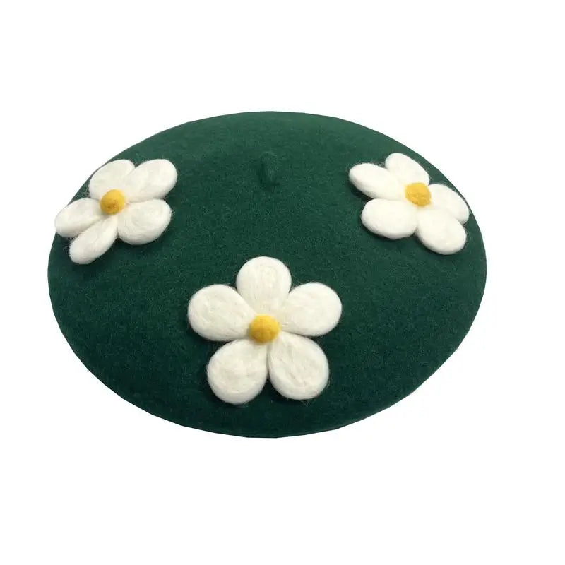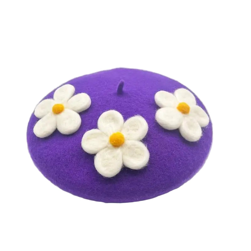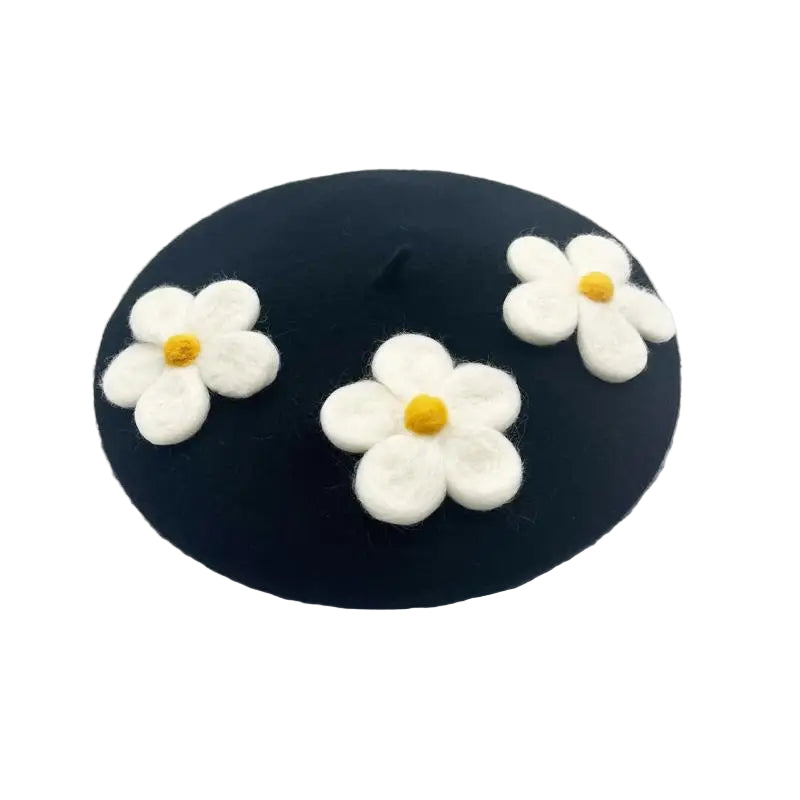 Encantadora boina de crochet con margaritas: hecha a mano con delicados detalles florales, perfecta para añadir un toque encantador de inspiración vintage a cualquier look. Suave, elegante y única.
