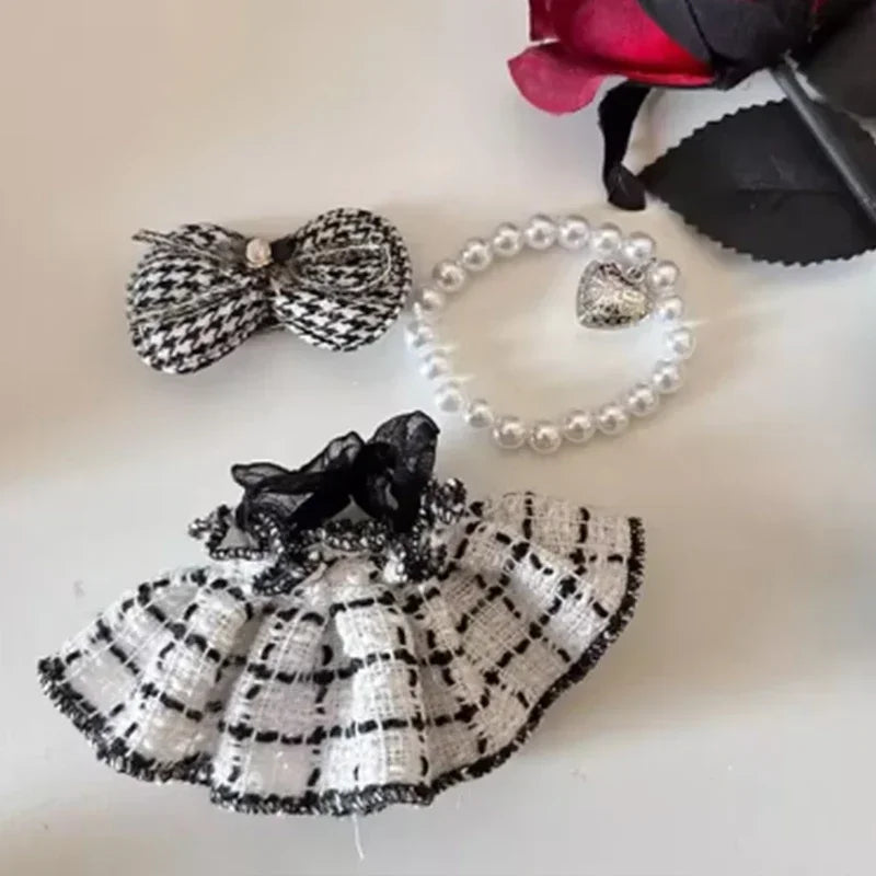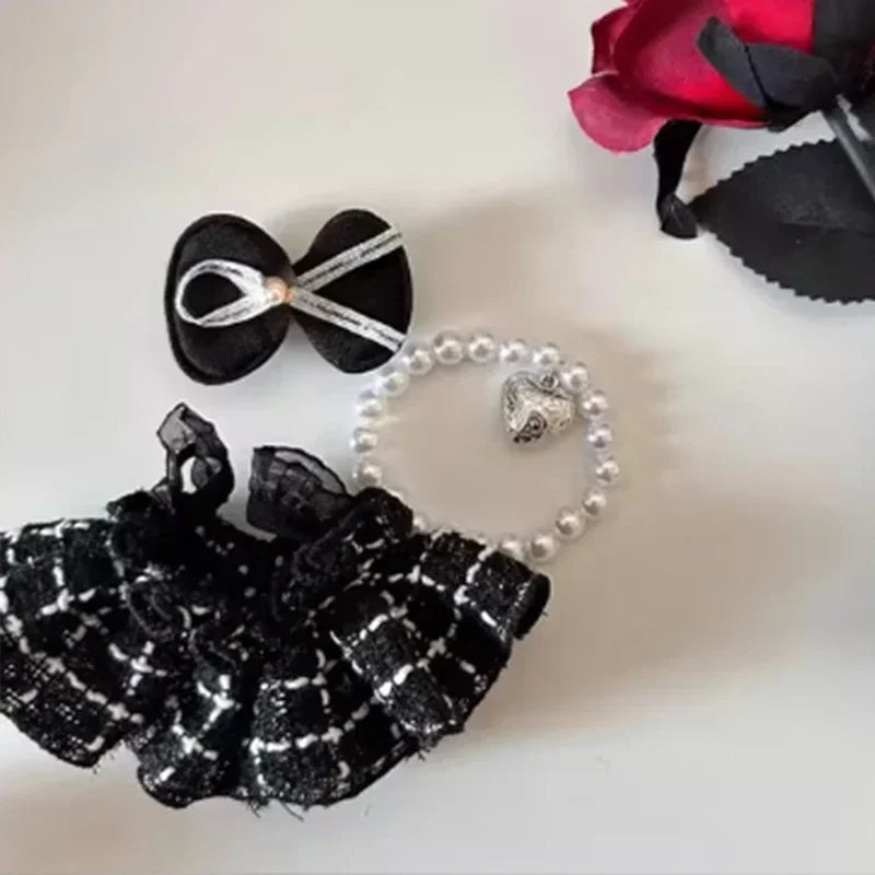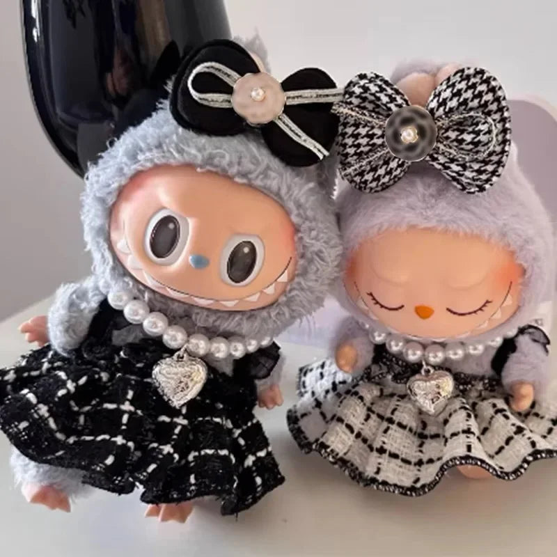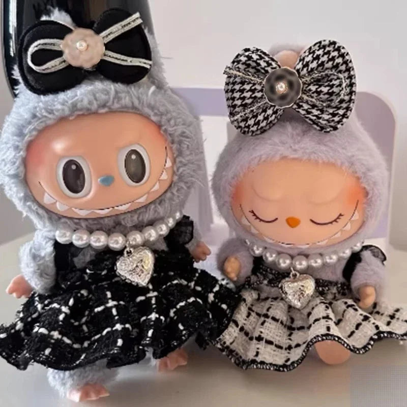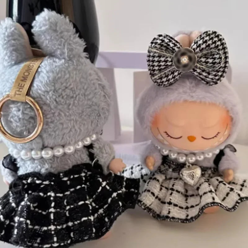 Elegante conjunto a cuadros inspirado en Lobubu en los clásicos blanco y negro, perfecto para estilizar muñecas, regalar o añadir un encanto atemporal a tus colecciones.