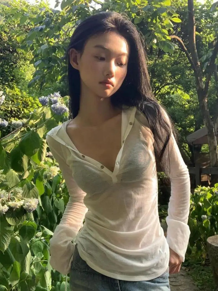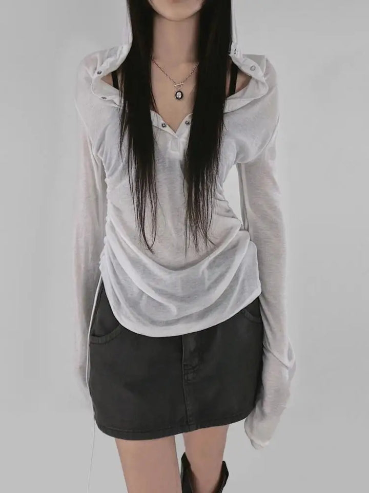 Camiseta ajustada con capucha y malla transparente