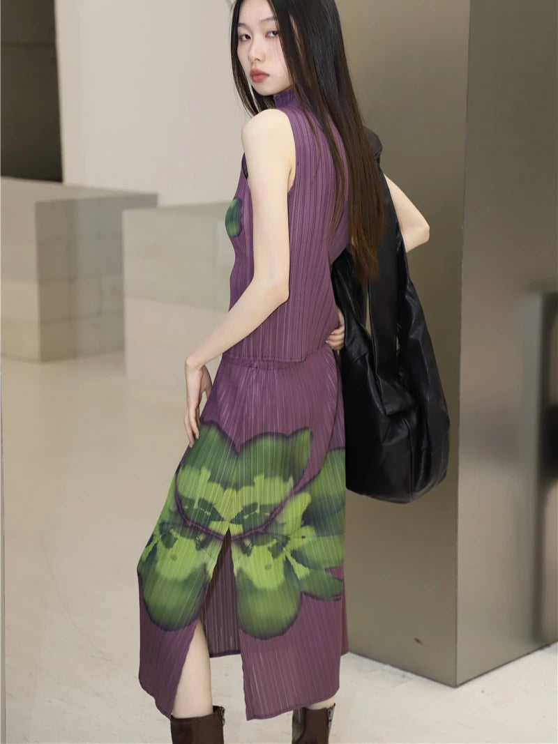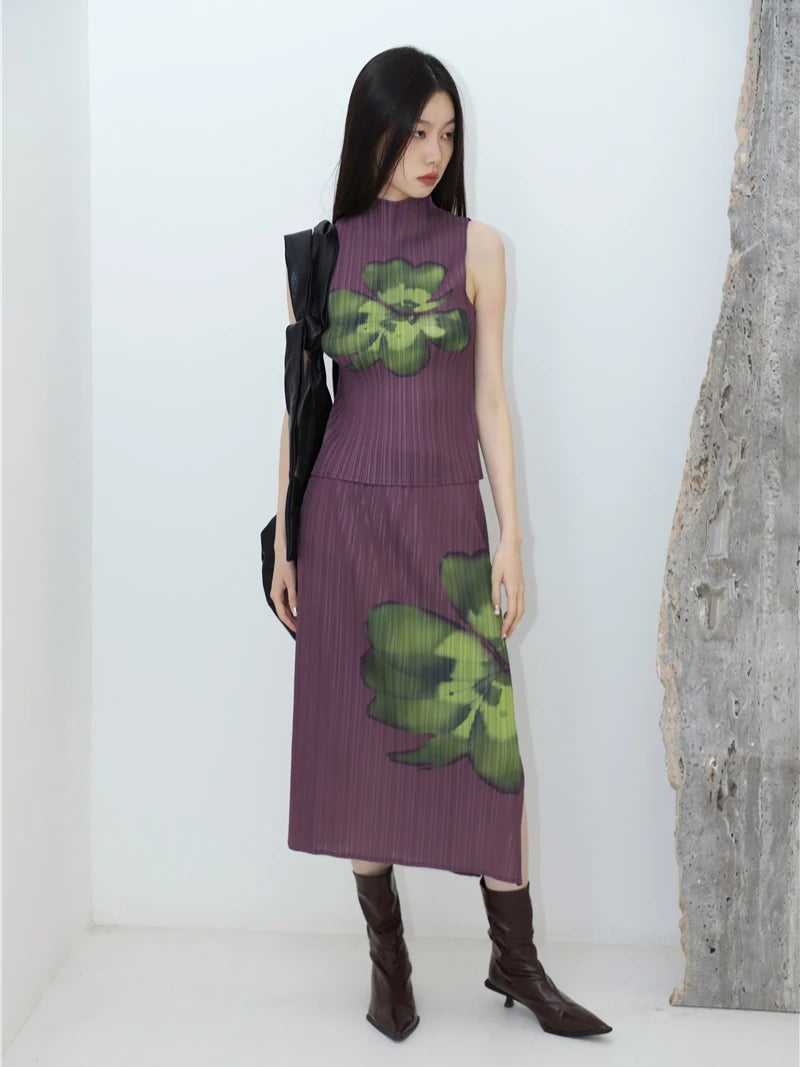 Stylish Pleated Floral Purple Summer Set