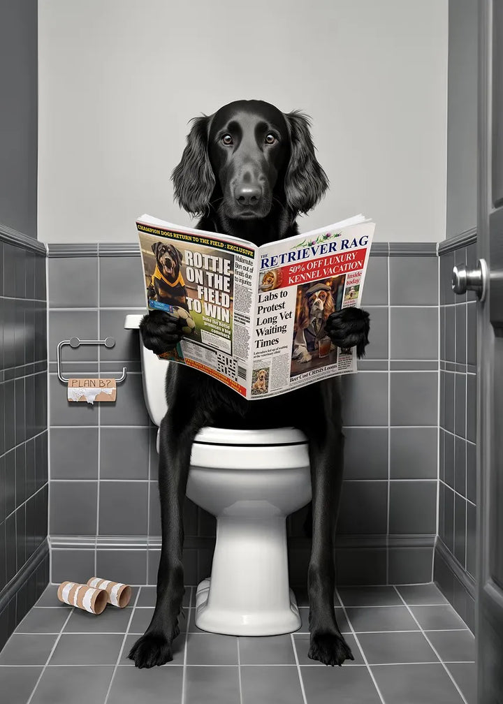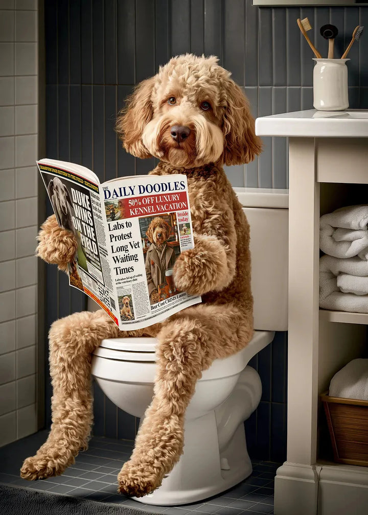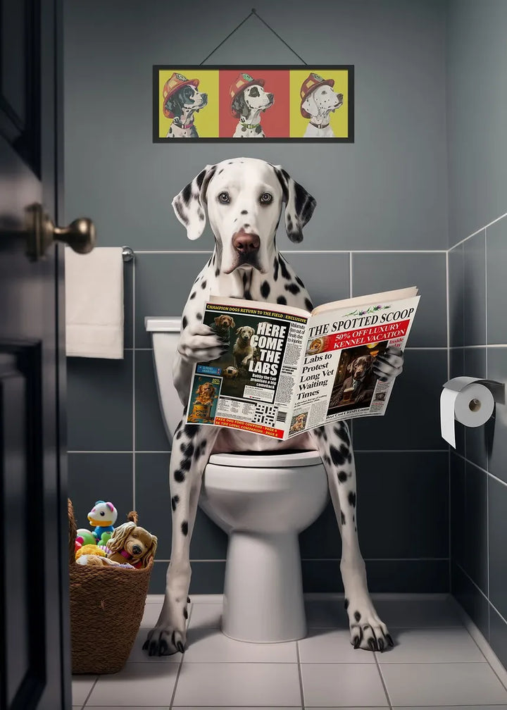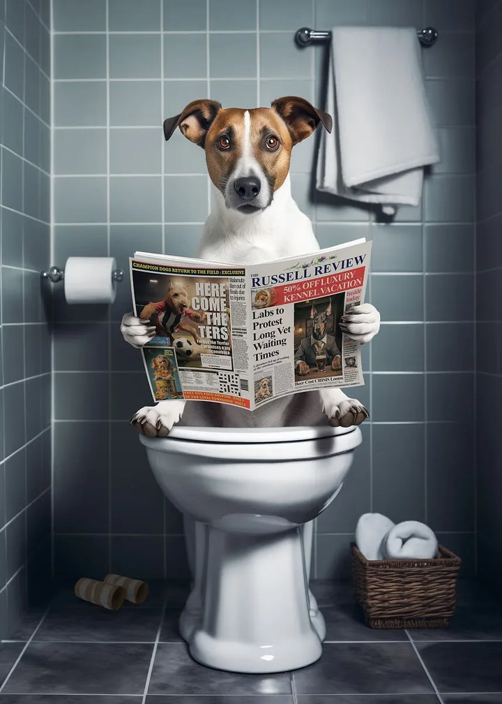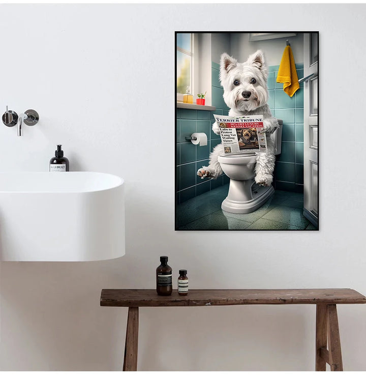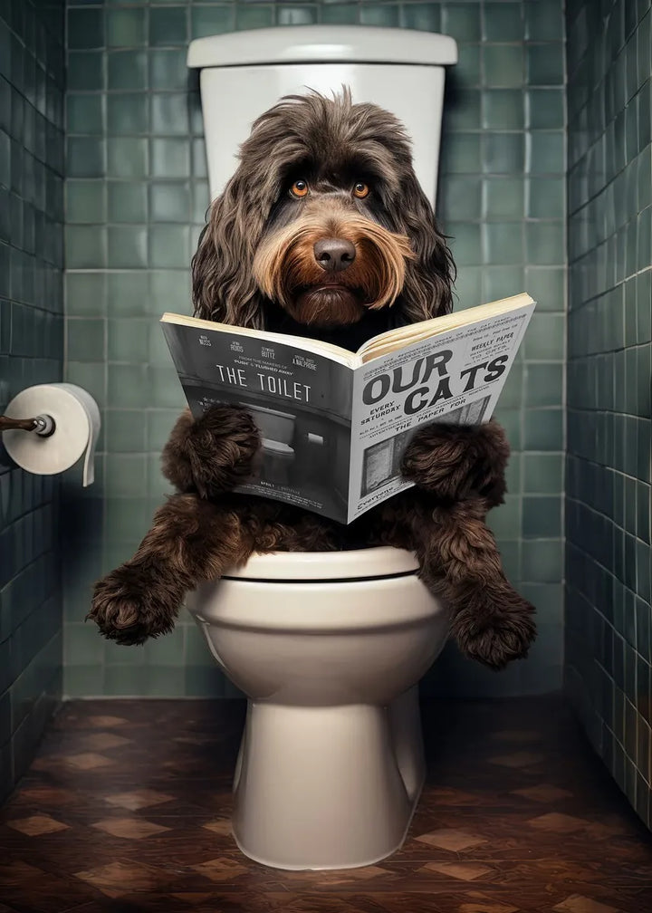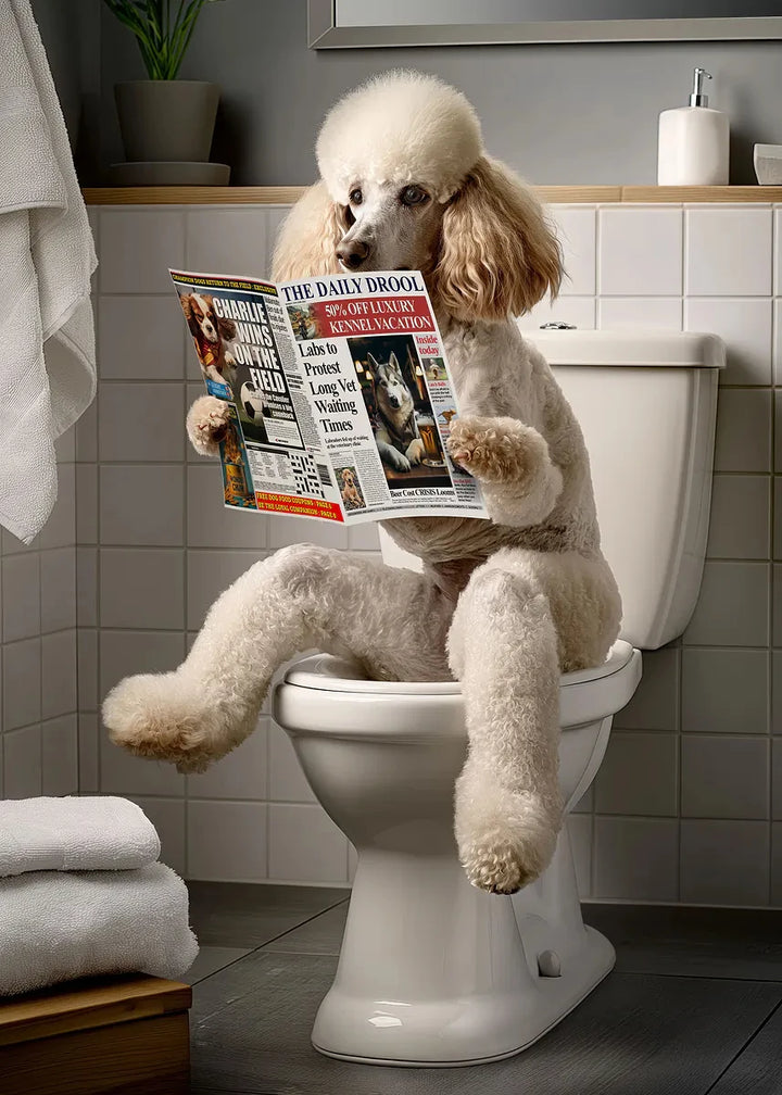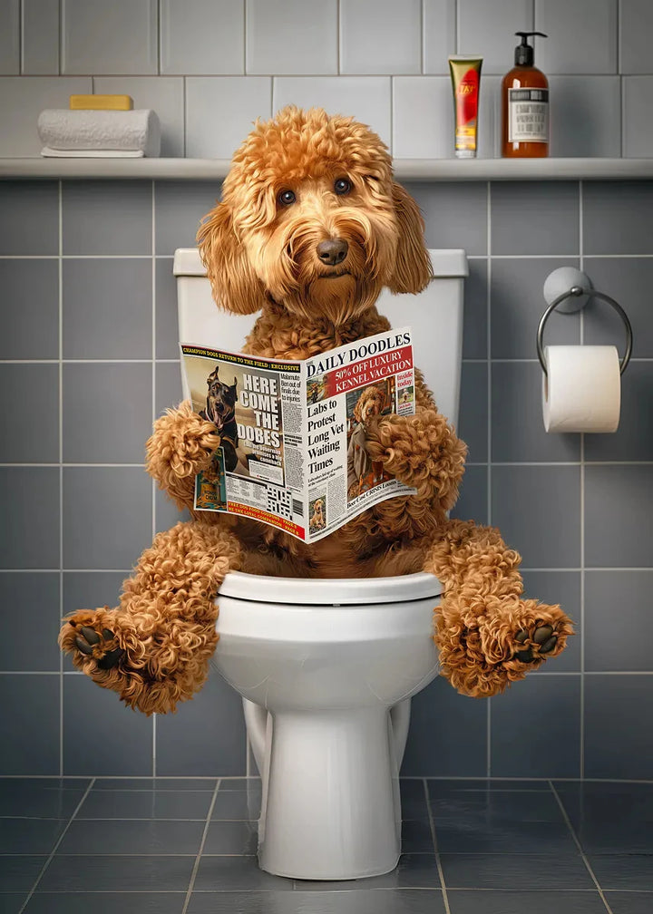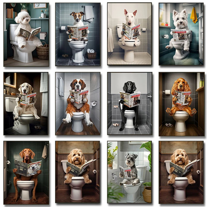 Funny Dog Reading Newspaper Poster featuring a cute pup caught in a clever, humorous scene—perfect for pet lovers and adding playful charm to any room or office décor.