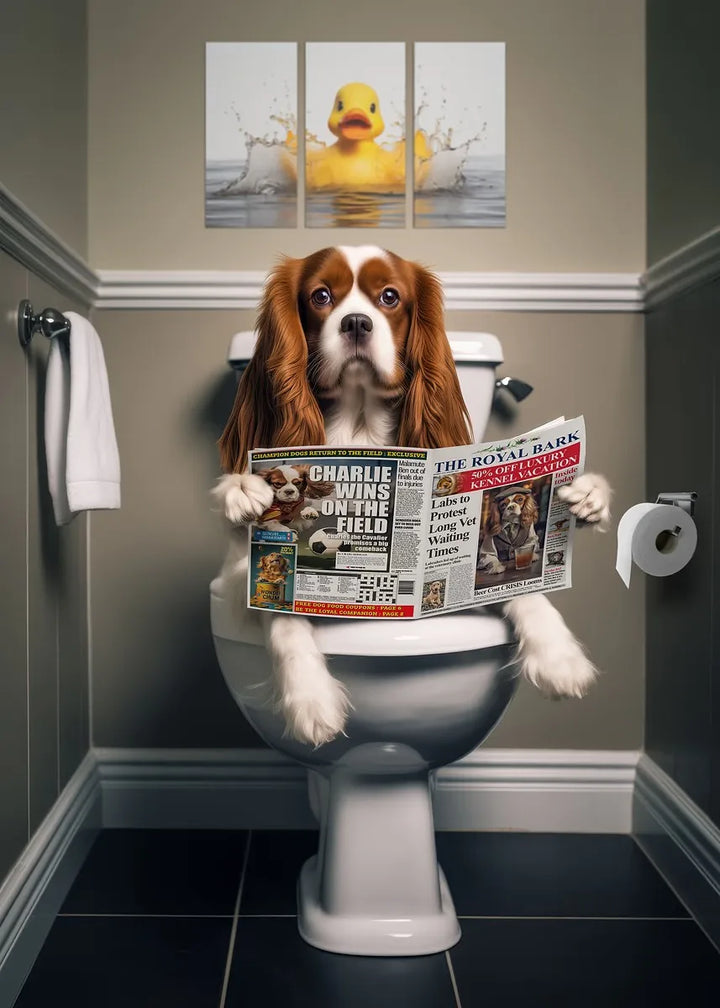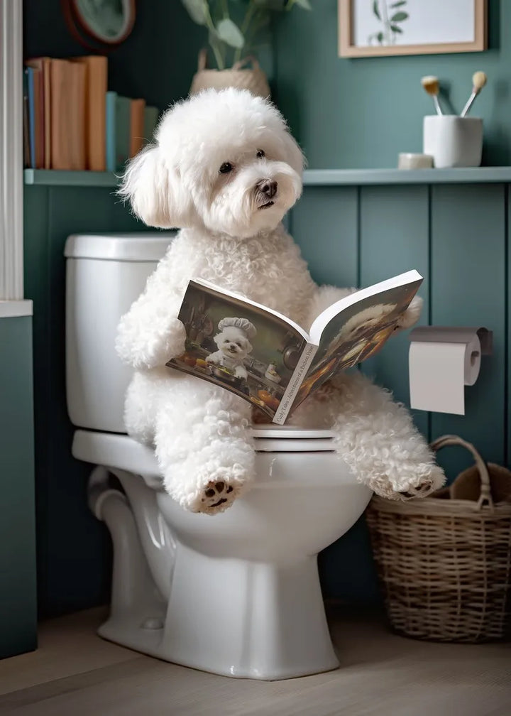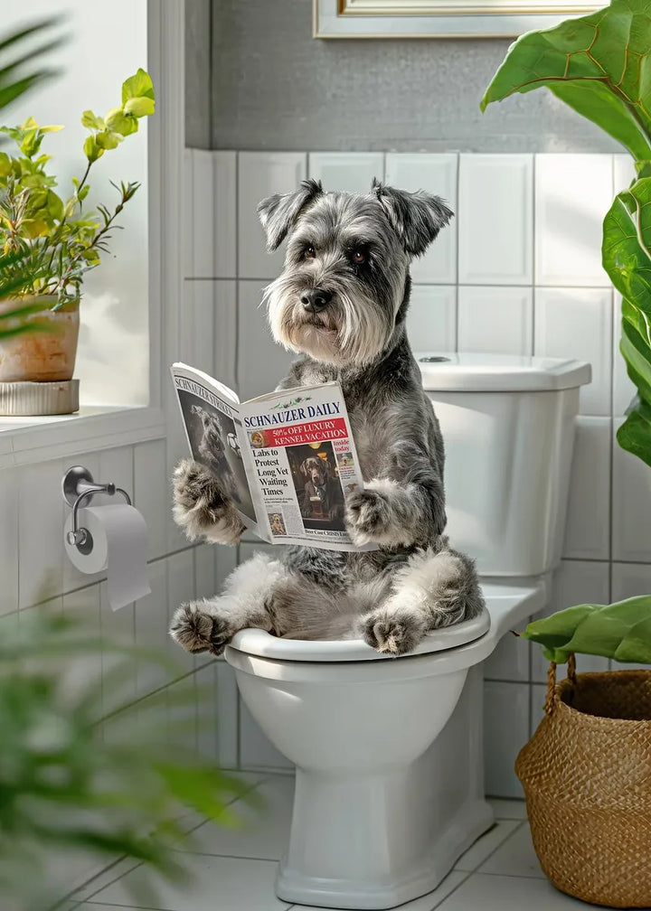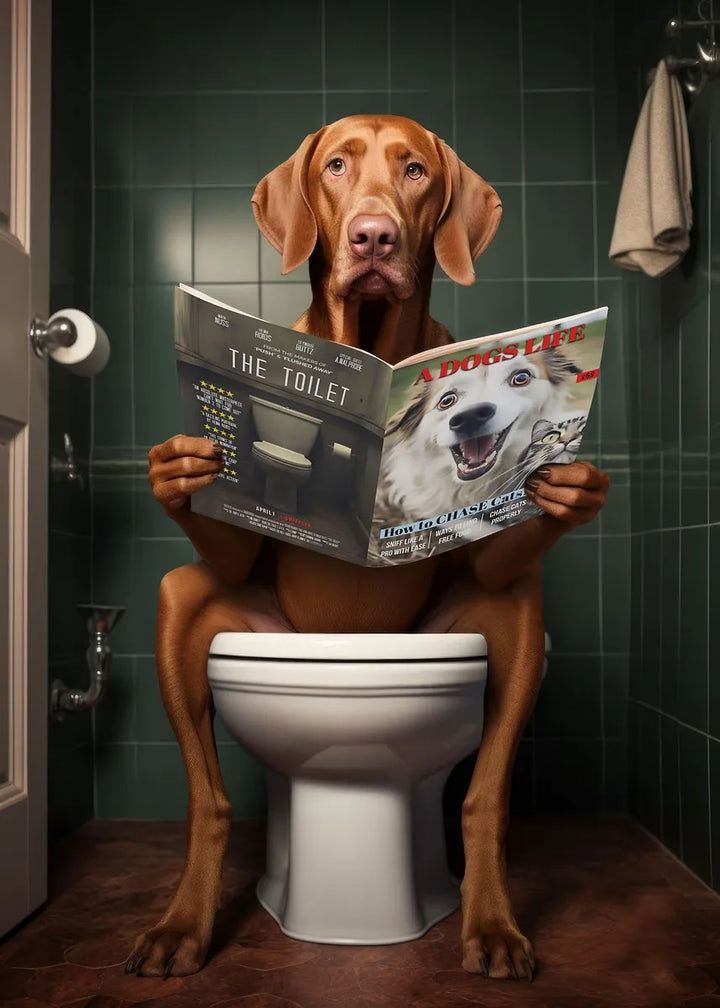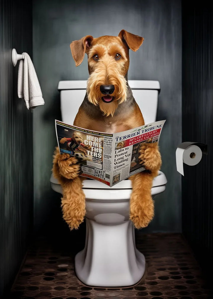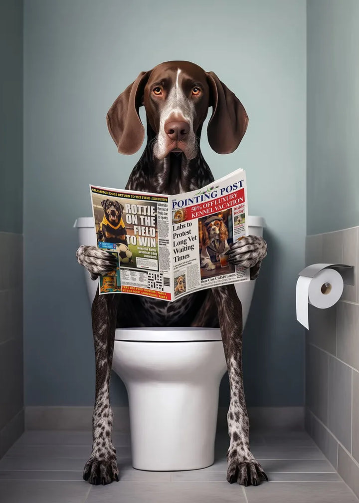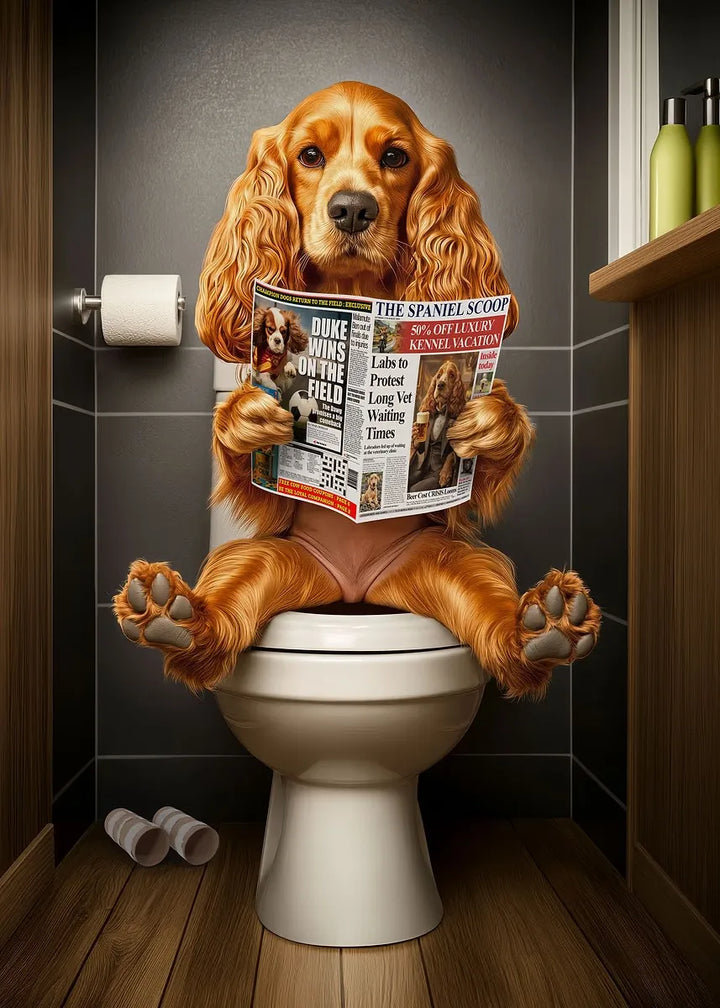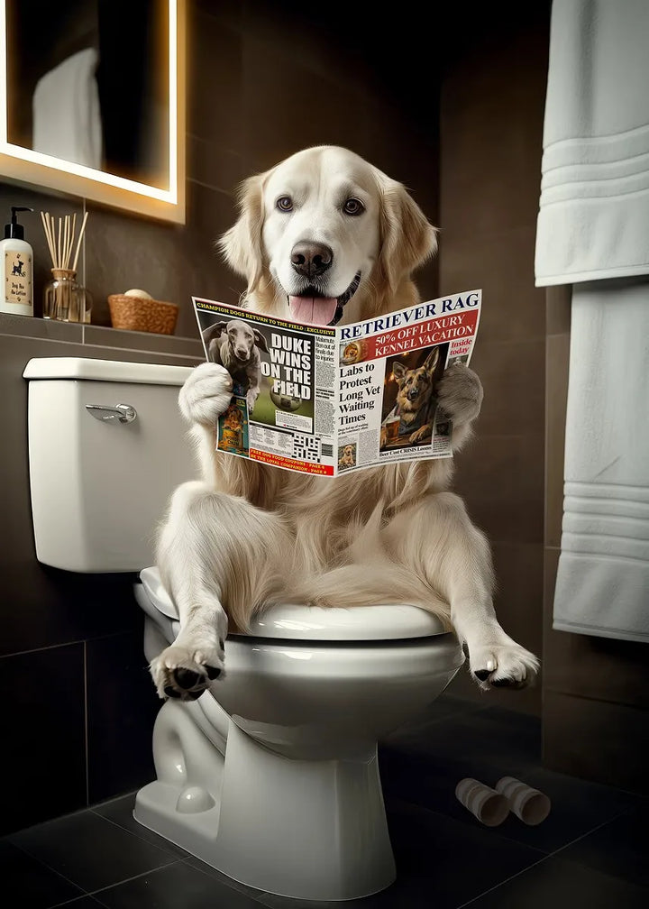 Funny Dog Reading Newspaper Poster featuring a cute pup caught in a clever, humorous scene—perfect for pet lovers and adding playful charm to any room or office décor.