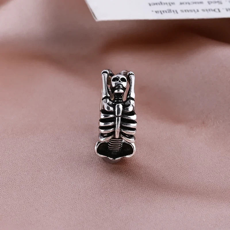 Punk skeleton rolling ring—edgy, kinetic design with rebellious flair, perfect for adding dark attitude and fidget-friendly style to any look