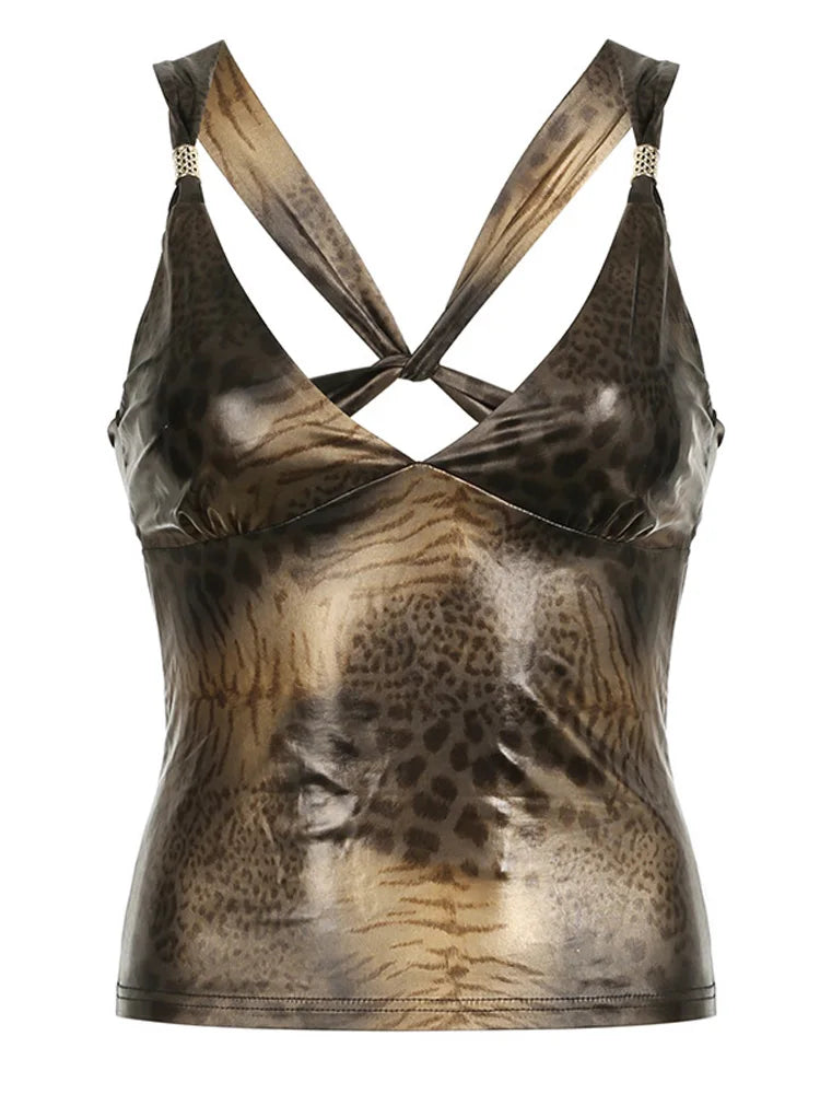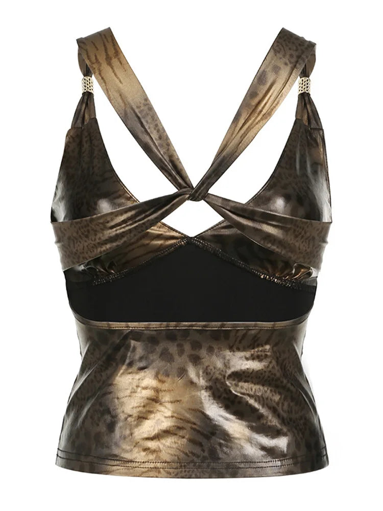 Baddie Leopard Backless Top