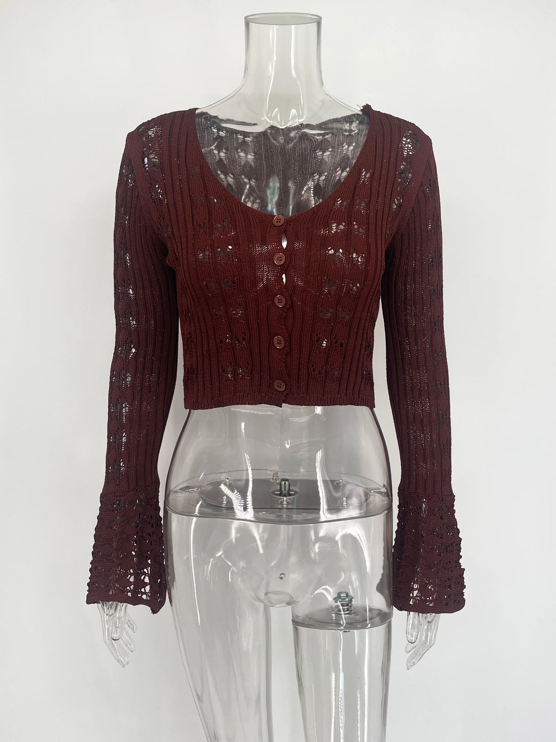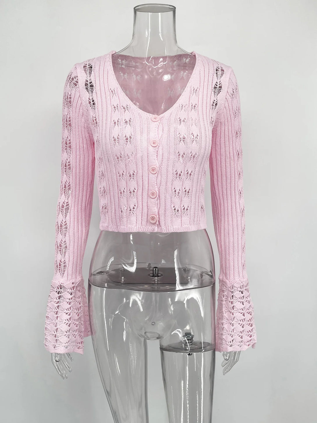 Y2KHollow Knitted Cardigan Women's Solid Long Sleeve