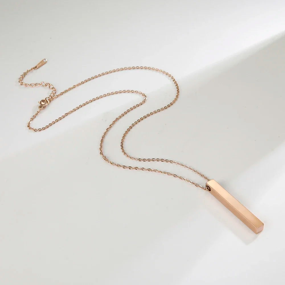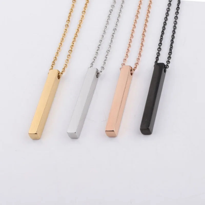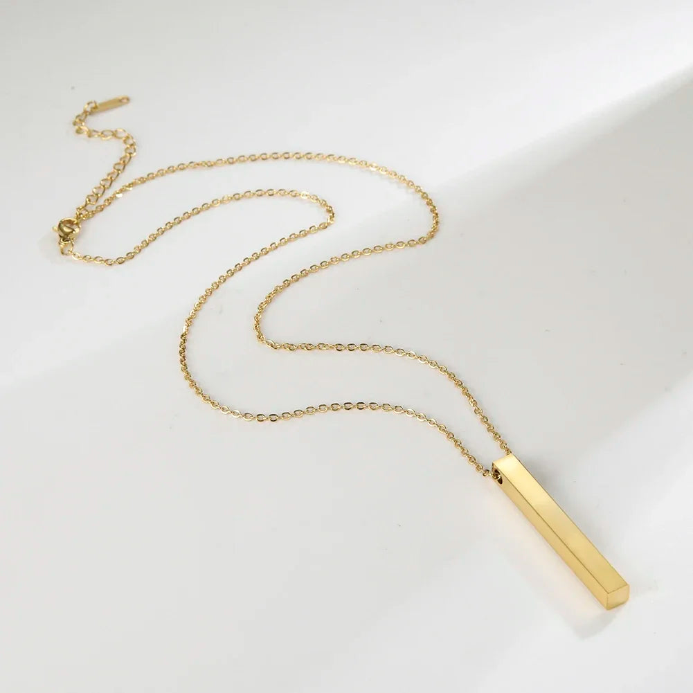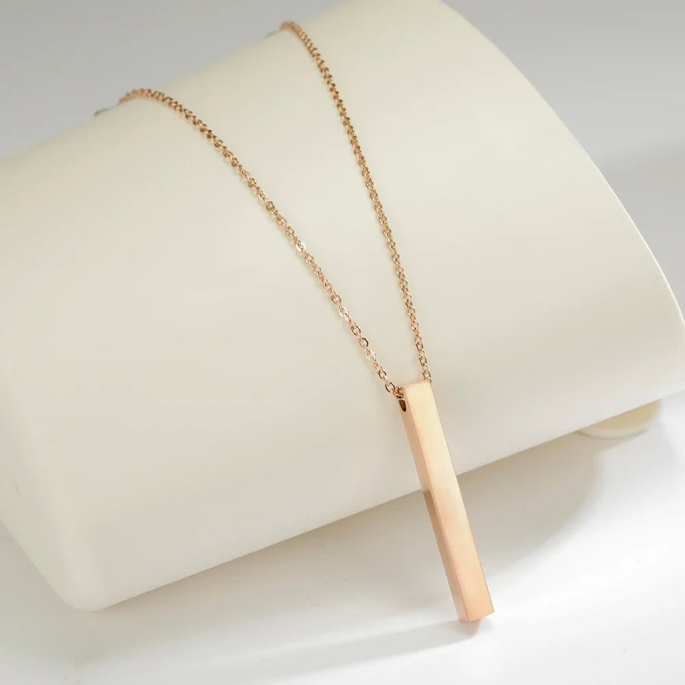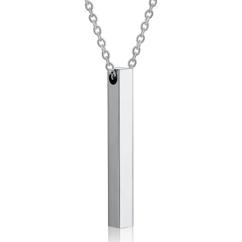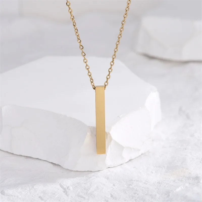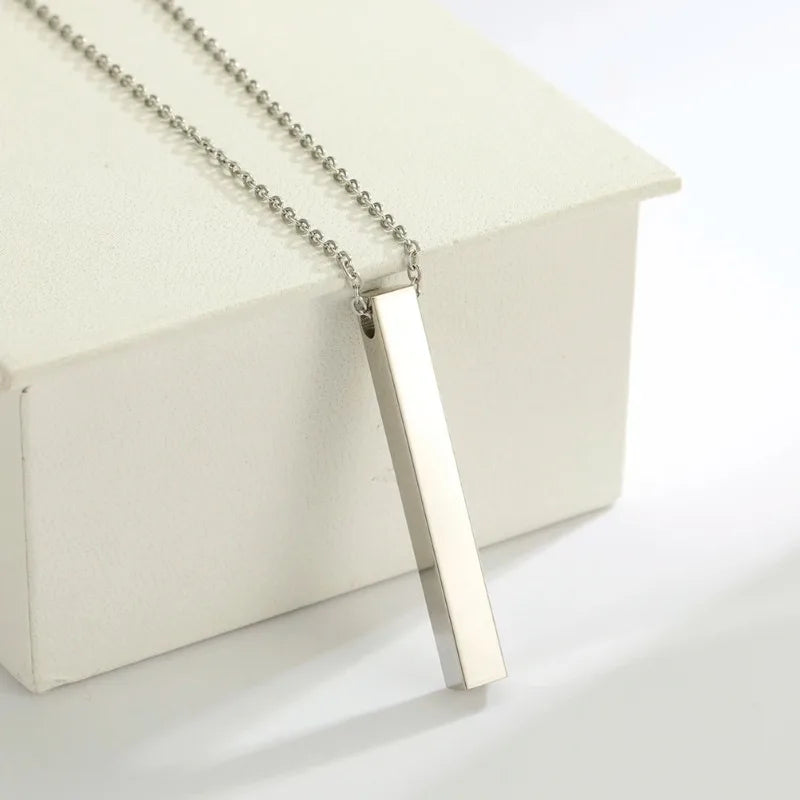Sleek vertical rectangular bar steel necklace—minimalist, modern, and perfect for layering or everyday edge.