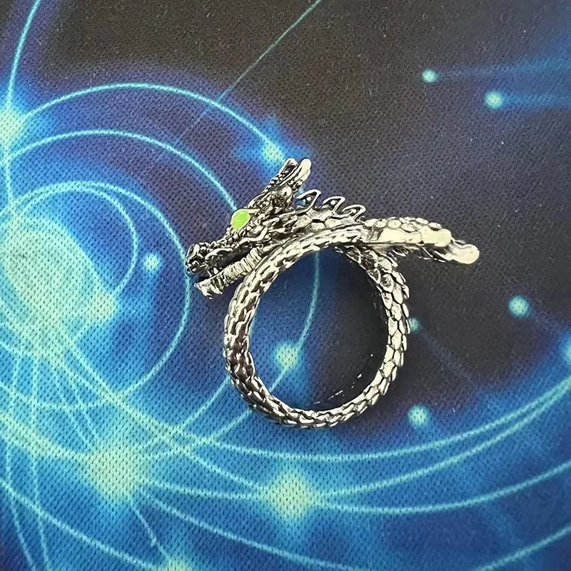 Vintage curved dragon ring—mythical elegance meets antique edge, featuring a sinuous dragon design that wraps with power and grace. Perfect for statement wear or symbolic gifting.