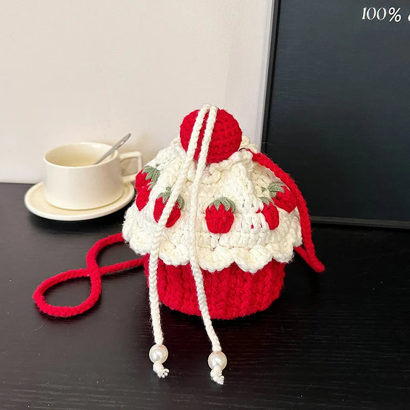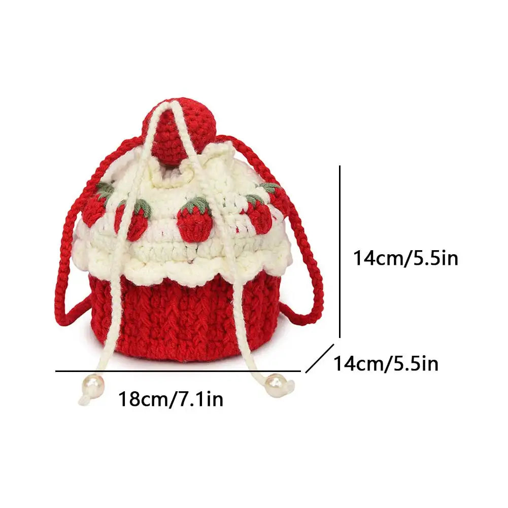 Cute Strawberry Cake Knitted Crochet Shoulder Bag